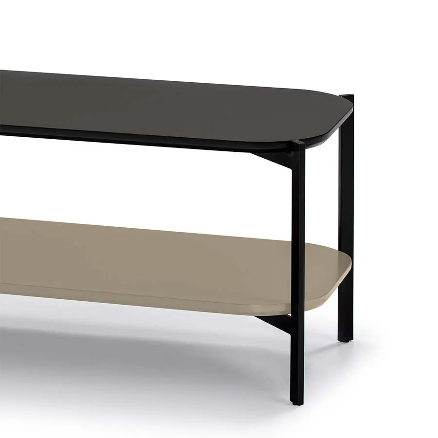 El mueble de televisión EXO se caracteriza por tener una estructura metálica que forma parte esencial del diseño. Su perfecta combinación con los materiales de la tapa y el estante, conforman un conjunto elegante y singular.