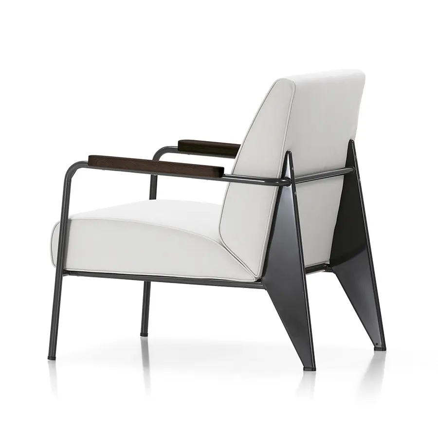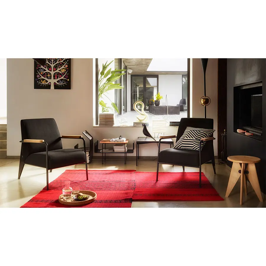 Desarrollado por Jean Prouvé, el Fauteuil de Salon es un ejemplo típico de la inconfundible estética estructural de sus diseños. El carácter discreto del sillón encaja en una gran variedad de interiores y su amplio acolchado y sus reposabrazos de madera maciza tratada al aceite transmiten una sensación de confort absoluto.