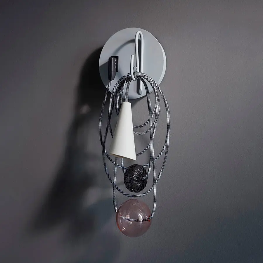 Entre escultura luminosa y obra de diseño, la lámpara de pared Filo consta de partes diversas y definidas, que crean un conjunto absolutamente único. Con una fuerte carga decorativa, Filo es un ábaco de colores que pone de manifiesto sus múltiples identidades.