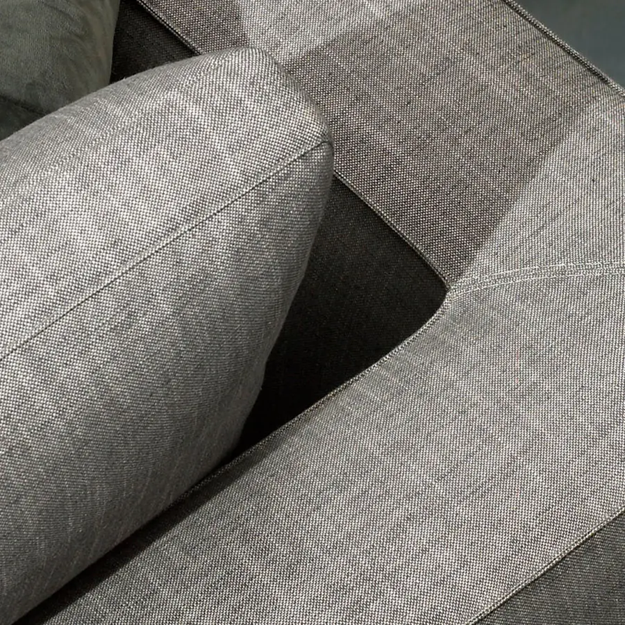 Estructura combinada de madera y tubular de hierro pintado en poliéster. Madera recubierta de espuma de poliuretano de varias densidades y fibra de poliéster. Cojín de asiento en espuma de poliuretano recubierto con una funda protectora rellena de plumas de pato blanco, plumón y fibra de poliéster. Cojines de respaldo revestidos de funda protectora con divisiones internas. Relleno de plumón y pluma de pato blanco esterilizado. Suspensión por correas elásticas. Totalmente desenfundable, excepto cuando se tapiza en piel o su imitación. Estructura desmontable (brazos y respaldos) mediante tornillos.