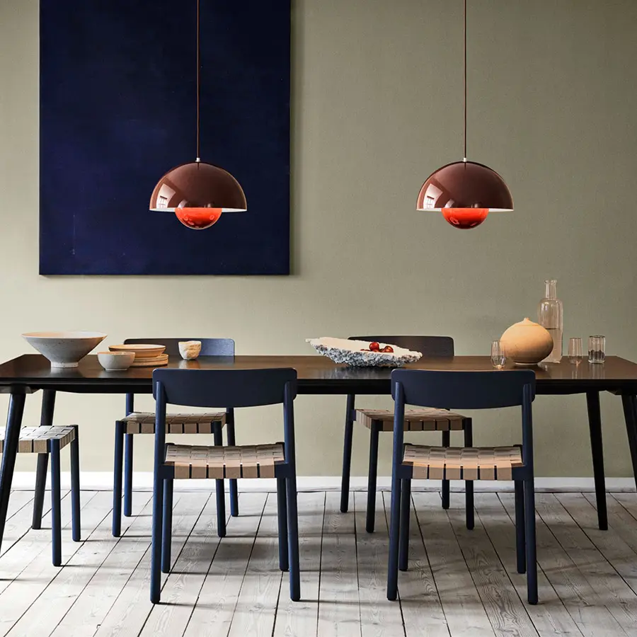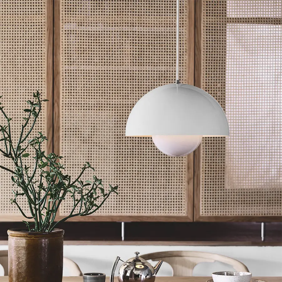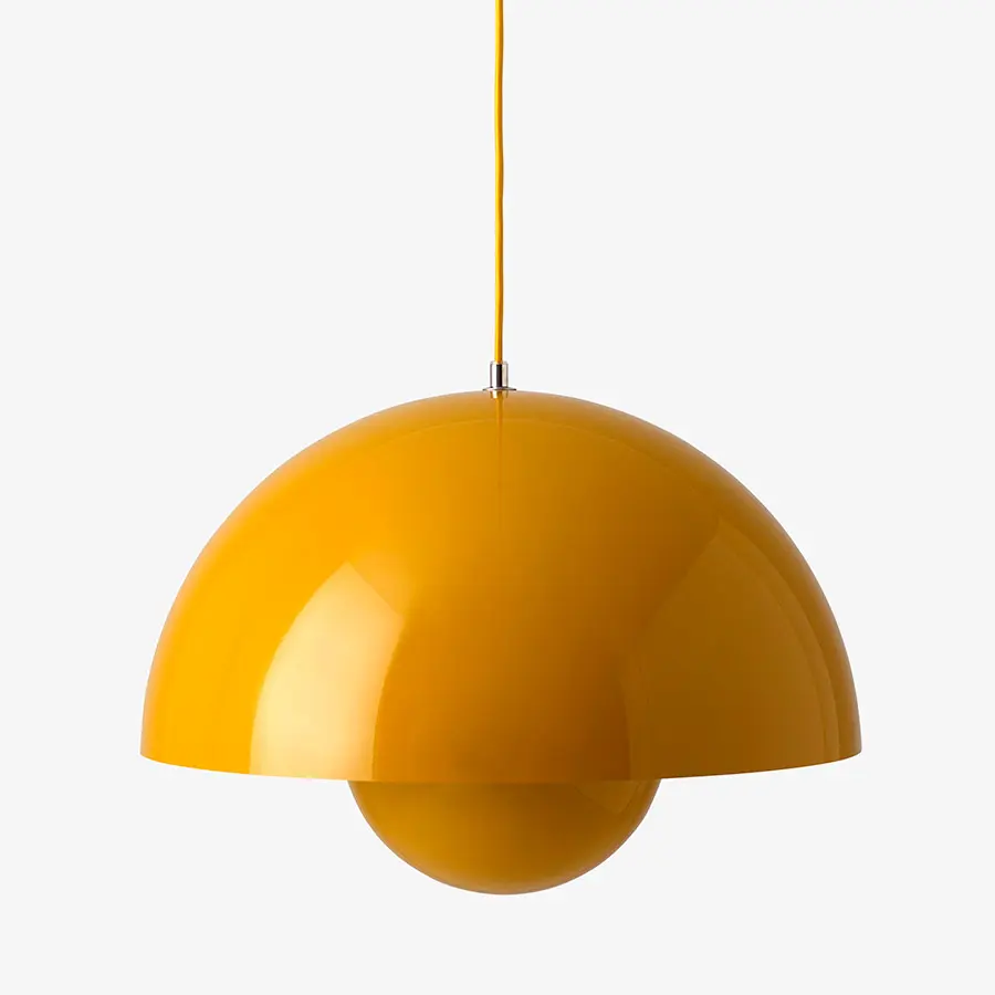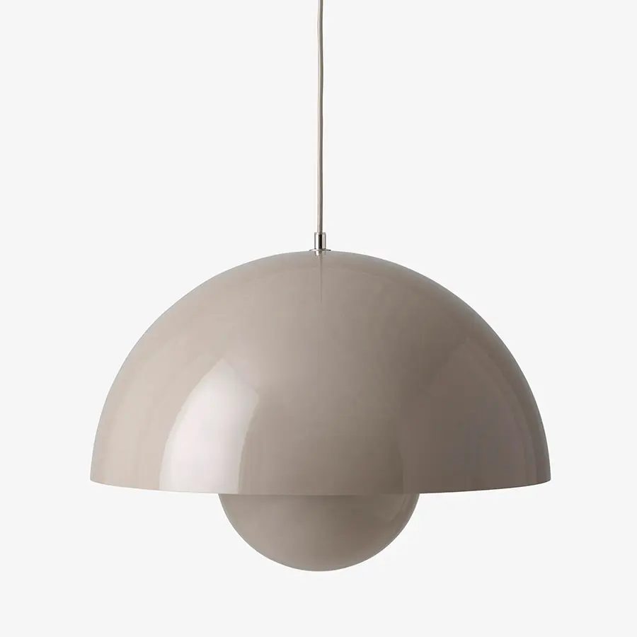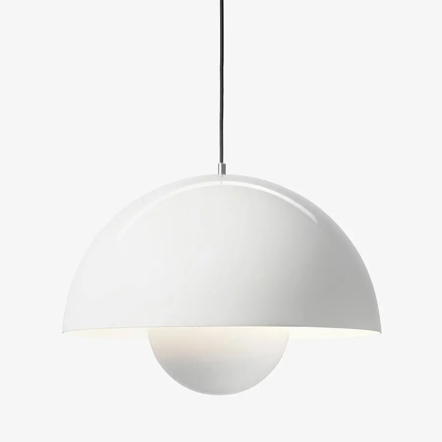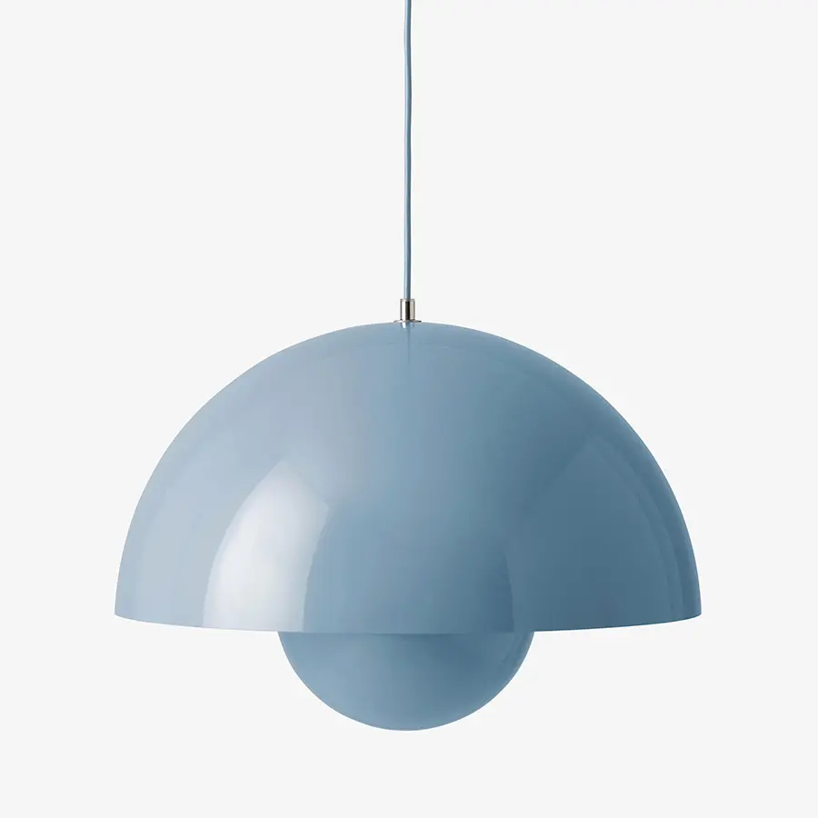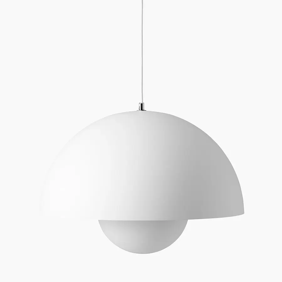 Llamada asi por la tendencia «Flower power» de los años 60, la lámpara colgante FlowerPot fue diseñada en 1969 por Verner Panton, y representa toda una era pasada pero sin embargo es un diseño indudablemente moderno. Ideal para colocar junto a un sillón, sofá o para colgar en un grupo en el comedor, la luz está disponible en una variedad de colores contemporáneos, y combina perfectamente con diferentes estilos de decoración. Disponible en una versión mate y metálica.