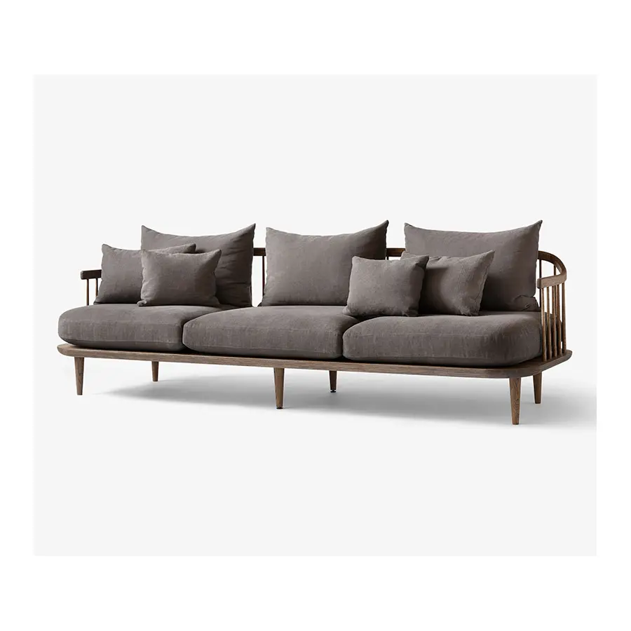 A diferencia de muchas de las butacas que forman parte del diseño escandinavo, FLY no impone ninguna postura particular. El amplio asiento está pensado para el confort, con cojines sueltos en el respaldo que se pueden colocar a gusto de cada uno. Pero FLY no deja escapar la estética ni la tradición en otros aspectos. La estructura del sillón, con respaldo de listones, está hecho de roble macizo encerado o teñido. Gracias precisamente a este material y su tratamiento, la butaca envejece con verdadera gracia, y se volverá más hermosa con el tiempo. También disponible en versión sofá y chaise-loungue.