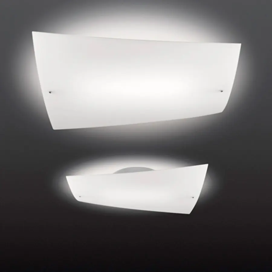 Diseñado por los fundadores de Foscarini durante los primeros años de vida de la empresa, Folio es un homenaje a la sencillez de los pequeños gestos que convierten en decorativo un proyecto de iluminación. Se trata de una lampara que recuerda una hoja de papel en tensión, en la que dos de sus ángulos se doblan ligeramente hacia la pared o el techo, con un movimiento apenas insinuado, pero suficiente para dar volumen a la forma bidimensional de una hoja. Dos pequeños tornillos unen el difusor en vidrio soplado al soporte metálico, dos puntos que se convierten en un delicado elemento decorativo. La fuente luminosa de Folio se aloja en el interior del soporte metálico y propaga, a través de su pantalla satinada, una luz cálida e intensa.
