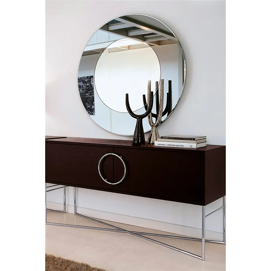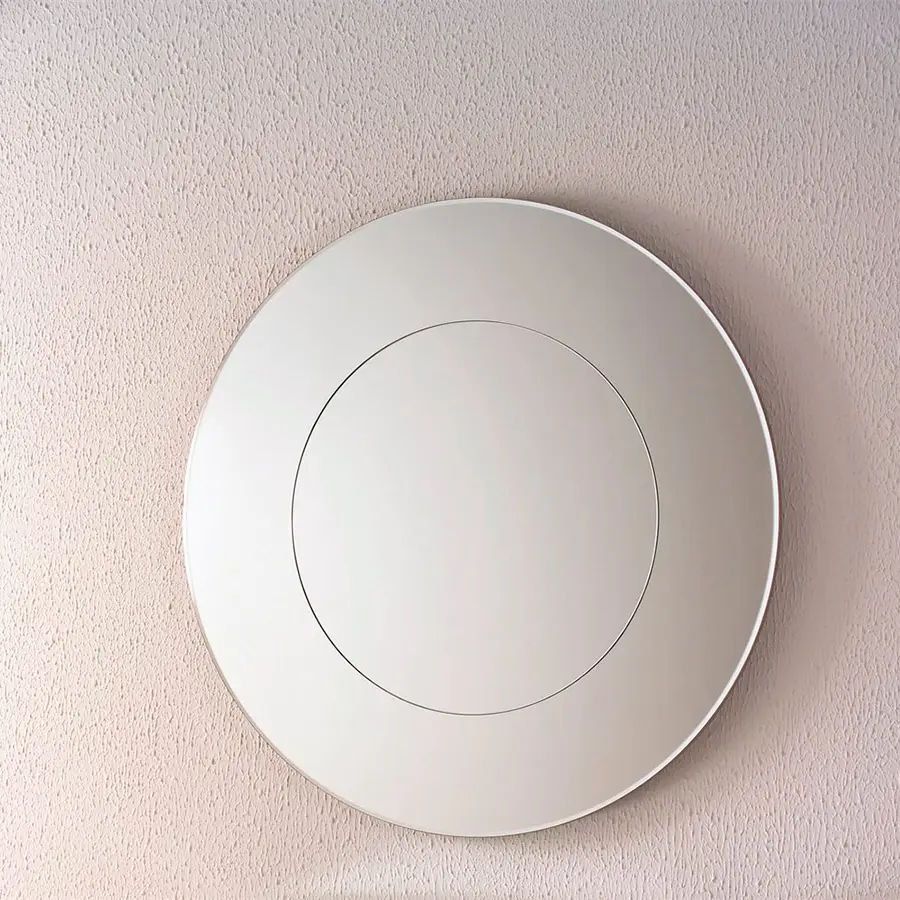 Espejo de pared redondo. Diametro 97, compuesto por un marco exterior en espejo ahumado y el central que tiene un diametro de 59, en espejo natural.
