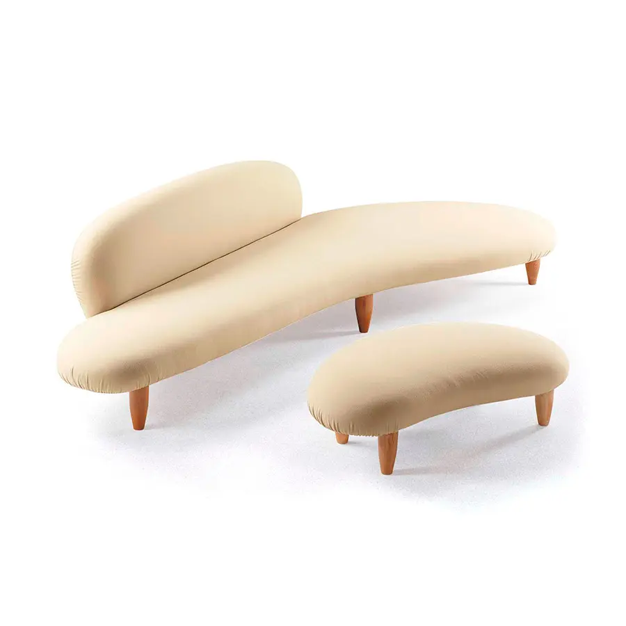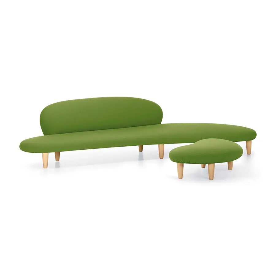 La expresividad escultórica de la obra de Noguchi resulta evidente en el Freeform Sofa, un diseño completamente diferente de cualquier otro de su época. Combinado con el Ottoman, compone un conjunto escultural que recuerda a grandes cantos rodados. Sus estilizadas formas orgánicas son elegantes y fluidas. Noguchi realza la ligereza de los elementos con un acolchado fino y confortable para el que elige tejidos de colores naturales. El Freeform Sofa y el Ottoman se fabricaron hacia 1950 en una serie limitada. Las pocas piezas originales que quedan de aquella serie alcanzan hoy en día precios altísimos en las subastas. En el año 2002, el Vitra Design Museum comenzó a fabricar el conjunto como una reedición auténtica. El Freeform Sofa no solo resulta adecuado para salones sino también para vestíbulos, hoteles y tiendas.