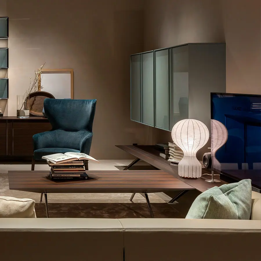 La lámpara de mesa Gatto de Flos proporciona una luz difusa y suave. Se puede utilizar como lámpara de mesa, lámpara de noche o lámpara de escritorio. Gatto está hecho de una estructura interna de acero con recubrimiento de polvo blanco que se rocía con una resina única ‘cocoon’ que crea el difusor. El Gatto está disponible en dos tamaños.