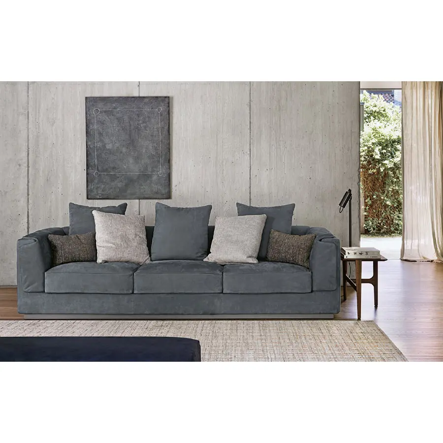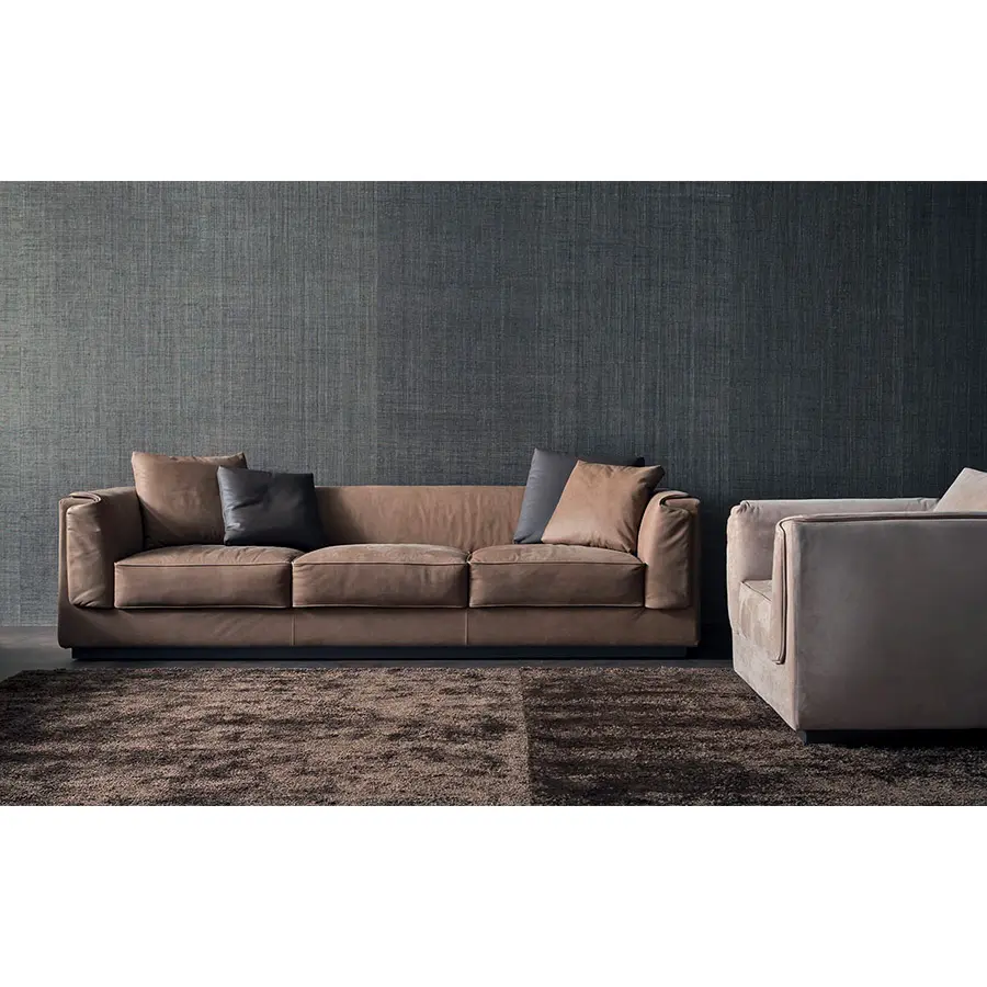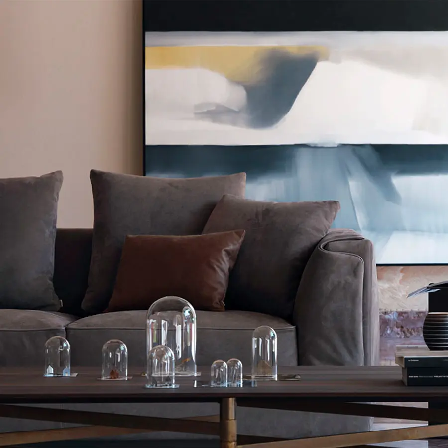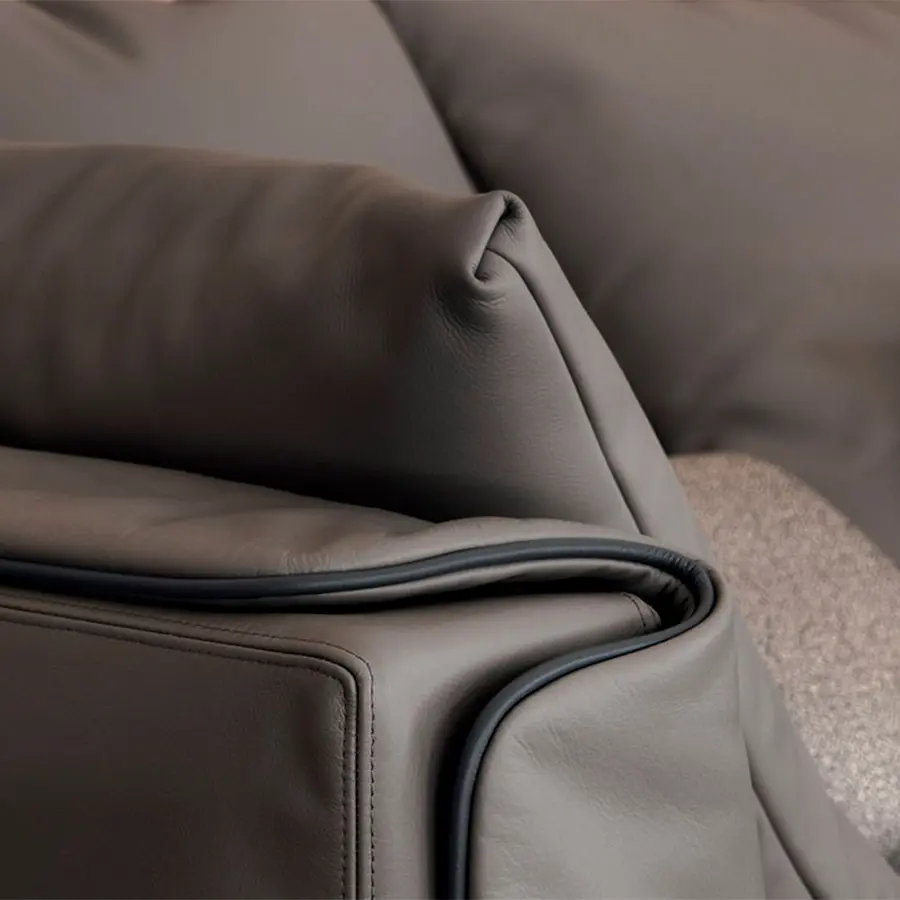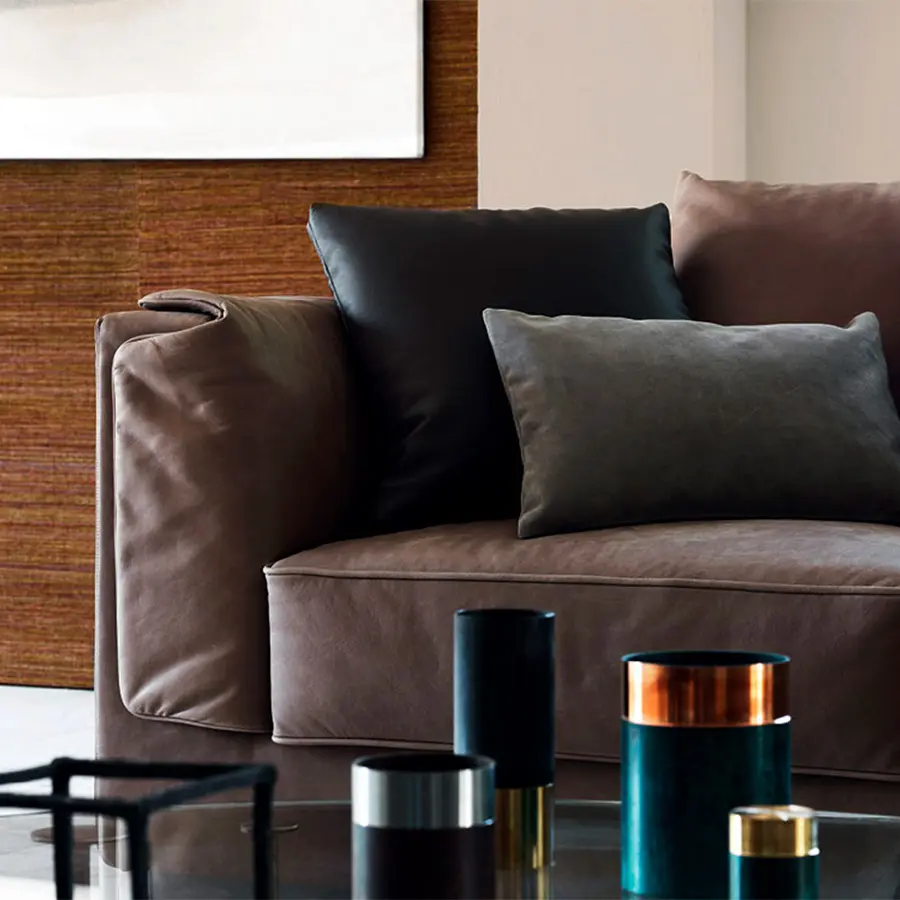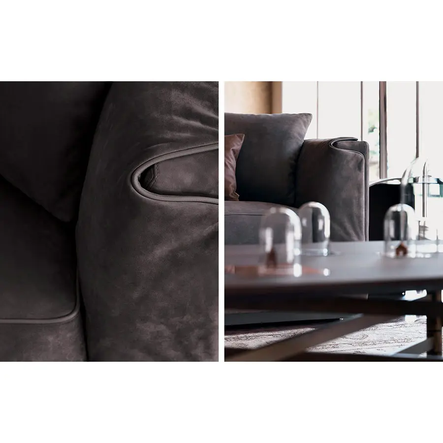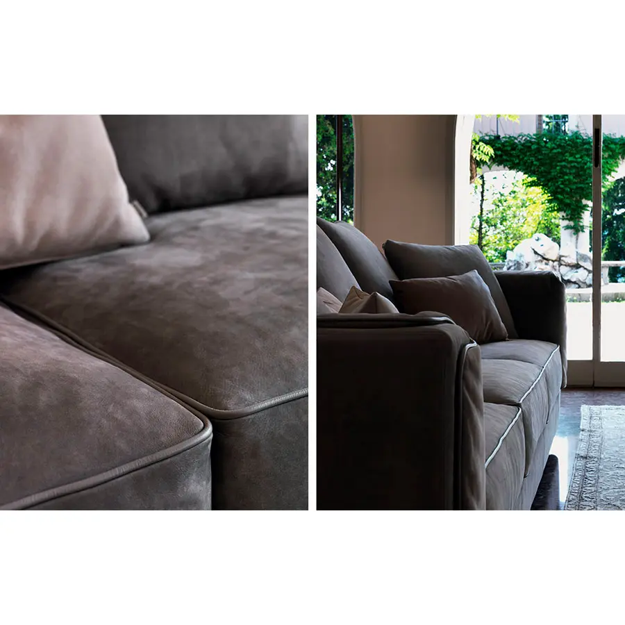 El elemento característico es el borde de los cojines de asiento y en el extremo de la segunda funda, a elegir en las variantes tono-sobre-tono o bien en contraste. El revestimiento de la estructura en tejido, piel o Ecopelle es desenfundable, la segunda cobertura se puede quitar. Un confort de calidad superior está garantizado por la posibilidad de elegir el asiento en dos versiones: más rigido o más blando.