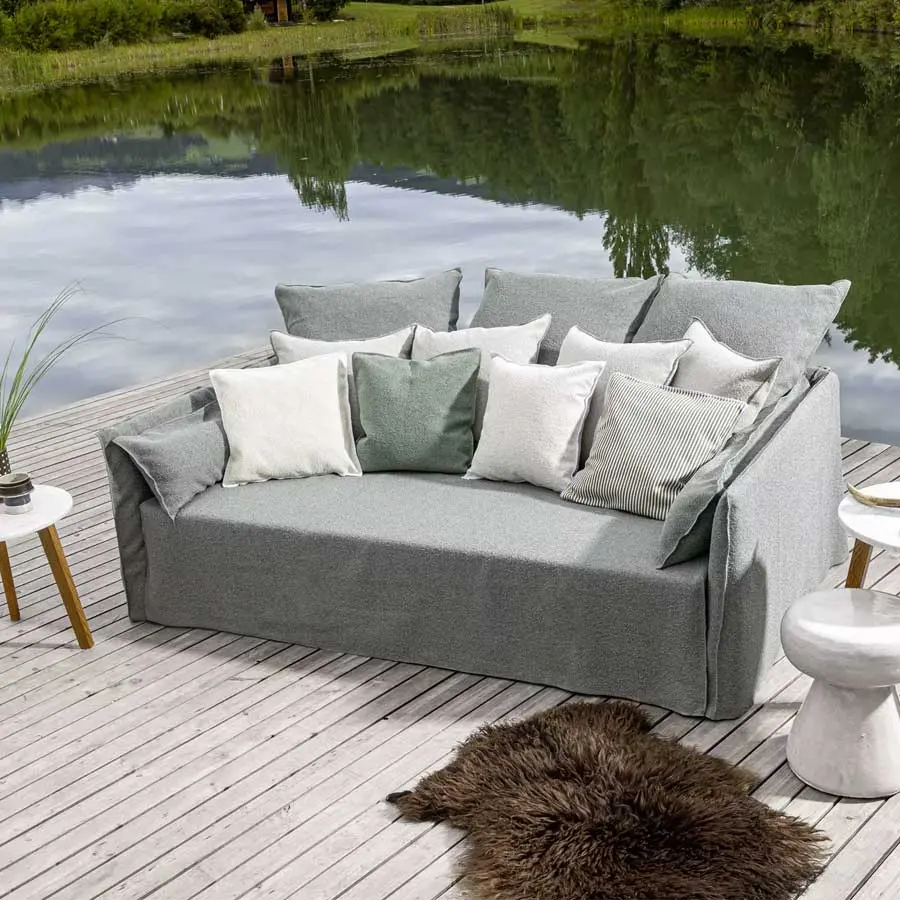 Familia de sofás rellenos y con fundas extraíbles, los Ghost Out 10/12/16 cuentan con un asiento cómodo y envolvente, que se desarrolla en torno a un ligero bastidor de volúmenes esenciales. Diseñados para resistir al agua y a la luz solar y para conservar su forma y su estética a lo largo del tiempo, están disponibles en diferentes tamaños, de dos o tres plazas y con diferentes profundidades de asiento. Se caracterizan por una estructura geométrica en la cual la suavidad está acentuada gracias a cojines sueltos. Su característica principal es el tapizado: una funda de gran tamaño cuyo perfil está destacado por las costuras a la vista, para desvestirse con facilidad y adoptar una imagen diferente cada vez.
