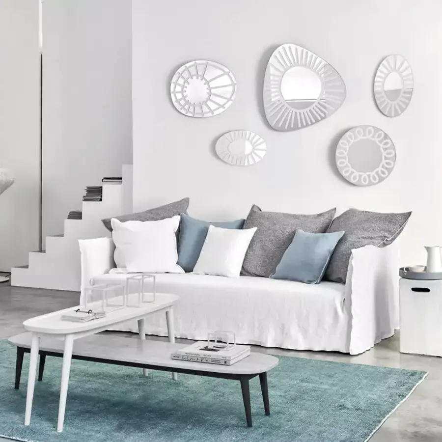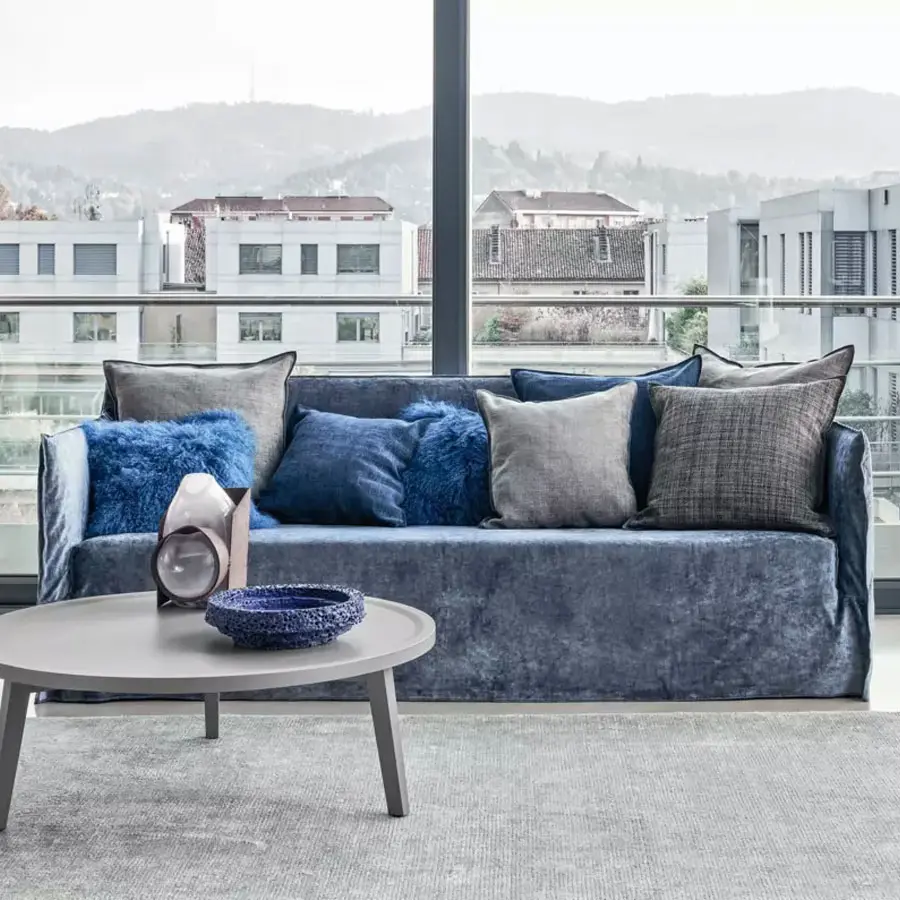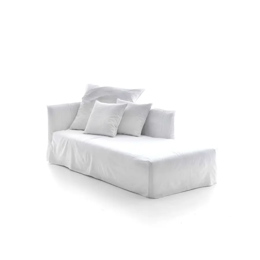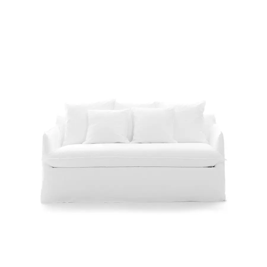 Familia de sofás de pequeño tamaño o XL, con respaldos con alturas importantes o sin, elementos componibles de variadas formas y medidas, dan origen a todas las posibles composiciones de Ghost, un sofá que se desarrolla en torno a un ligero bastidor de volúmenes esenciales. Realizado con una estructura minimalista y sutil, revestida de poliuretano expandido, Ghost contiene suaves cojines sueltos de mezcla de plumas. La característica principal de los sofás Ghost es la funda extraíble, una funda de gran tamaño cuyo perfil está destacado por las costuras a la vista, que permite desvestir y volver a vestir a los productos en un instante. Se trata de un diseño textil que cambia fácilmente el aspecto, permitiendo pasar de un look formal a uno informal con facilidad y rápidamente.
