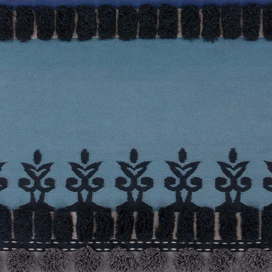 Esta es la alfombra Tumbuctú de la colección Glaoui, una pieza disponible en dos tamaños elaborada con un complejo sistema artesanal que alterna tres tipos de técnicas. Las diferentes texturas y volúmenes de sus motivos se confeccionan con pelo anudado, tejido plano y bordado, un laborioso método de origen marroquí del que la colección toma su nombre. La colección Glaoui está integrada por una serie de alfombras y pufs que mezclan de manera ecléctica y armónica un variado estilo de patrones de dibujo y texturas. Una compleja técnica tradicional de Marruecos llevada a otra dimensión estética por la diseñadora Sandra Figuerola, quien se ha inspirado en colores, gráficas y topografías de origen africano e indio para sus motivos.