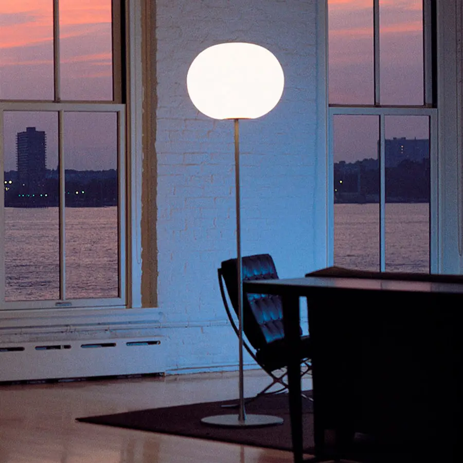 La lámpara de pie Flos Glo-Ball proporciona una luz suave y difusa sin sombras duras.
