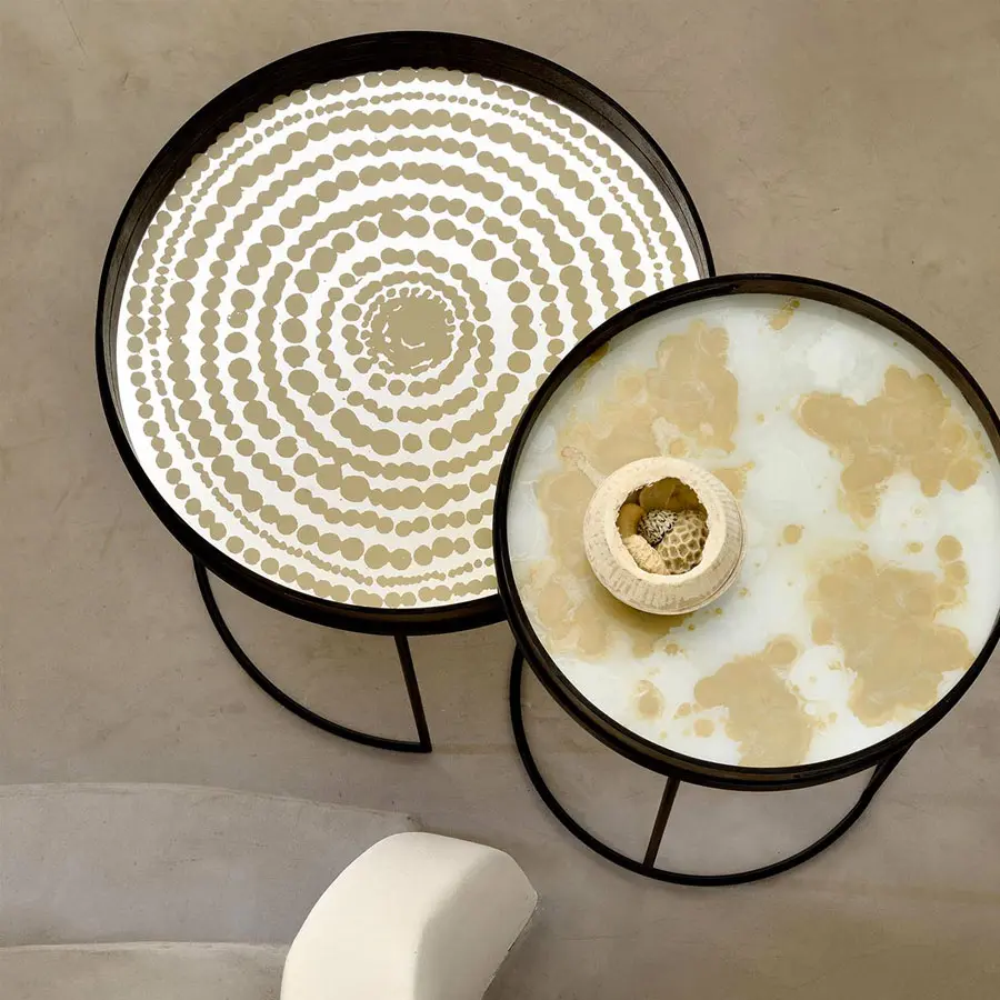 Inspirada en estampados tribales y motivos de África a Indonesia, la colección de bandejas Tribal Quest ve los textiles del mundo ilustrados en sus piezas. La mezcla de colores lujosos con neutros apagados en patrones ricos crea un equilibrio fluido, capturando adecuadamente su inspiración en lugares del mundo. Imitando el suntuoso movimiento de la tela, la colección Tribal Quest es vívida y estimulante.