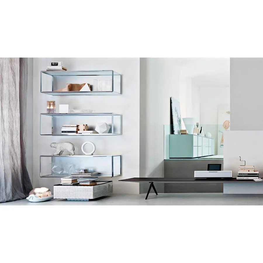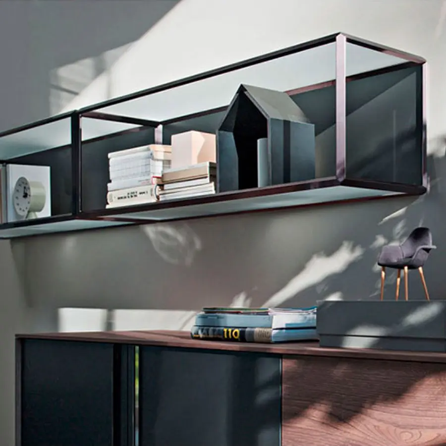 Después de las verticalidades, una marca que se recorta en la pared. Un sólido permeable que sale del tabique, Grado° Bookshelf es un elemento de decoración que resalta por su esencialidad y capacidad para combinarse con cualquier otro mueble. La colección Grado°, diseñada por Ron Gilad, finalista del XXIII galardón «Compasso D’Oro», se enriquece con un elemento nuevo: Grado° Bookshelf, elemento superior que presenta un característico perfil de 45°, concebido en cuanto librería o contenedor para guardar objetos queridos, perfecto para realizar con facilidad librerías colgadas de gran impacto. A los amantes de la tradición, el rigor, las certezas de la colección clásica está dedicada la versión madera en nogal americano.