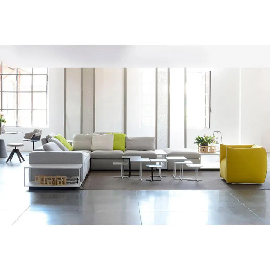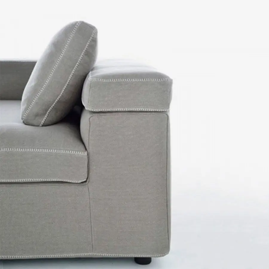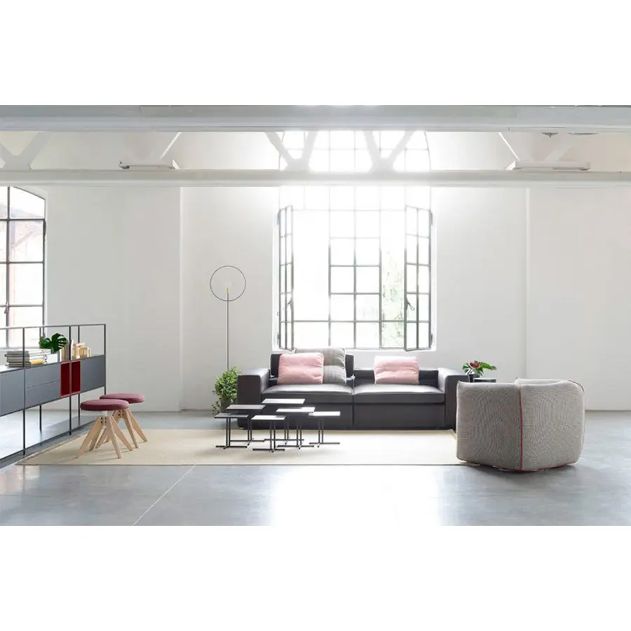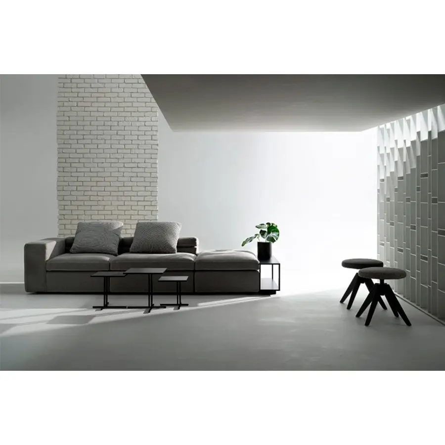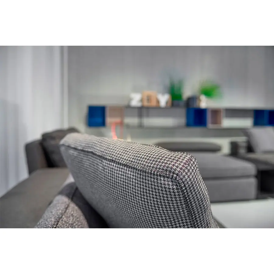 Grafo proviene del deseo del diseñador de dotar a un objeto blando con la «marca de identificación» de los productos icónicos de la colección MDF Italia. Una calidad gráfica pura y directa, parte de la filosofía de la compañía, ha sido la fuente de inspiración para el proyecto. Grafo es un sistema modular. Tres sofás, ocho elementos tapizados y tres mesas de café complementarias permiten desarrollar infinitas soluciones de acuerdo con la interpretación libre y creativa del cliente. Costuras especiales en contraste en los bordes disponibles en blanco, gris medio y antracita. El respaldo plegable integrado en el módulo garantiza la regulación de la altura. El sistema se completa con una amplia gama de cojines.