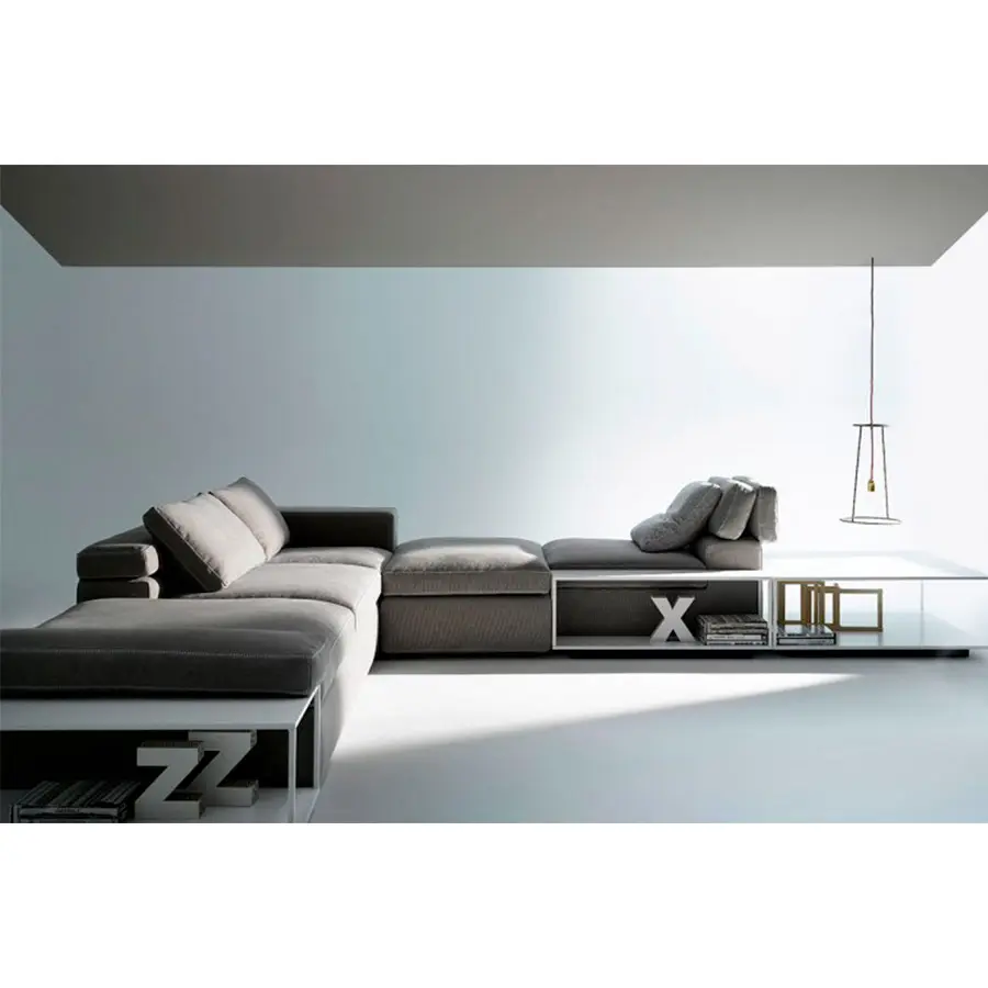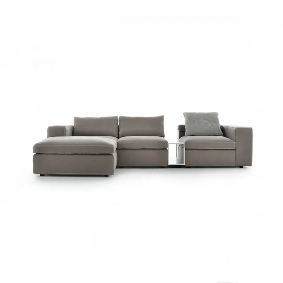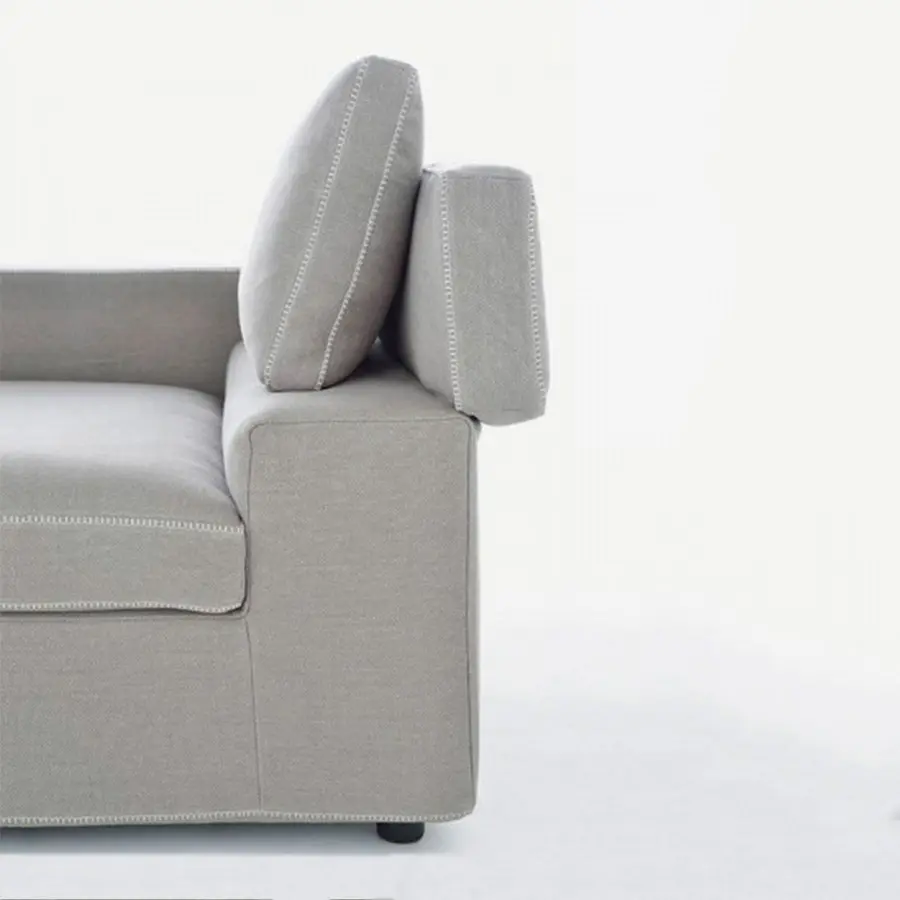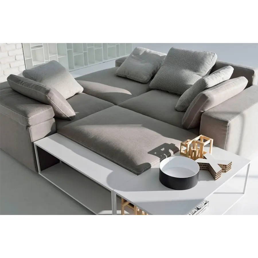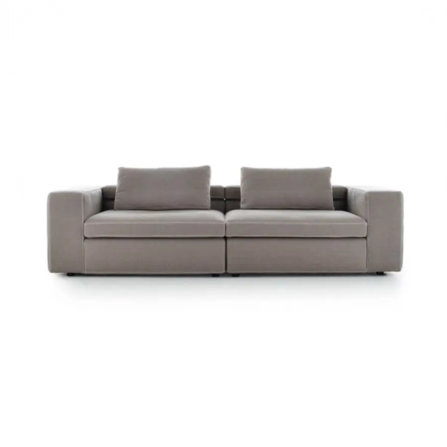 Grafo proviene del deseo del diseñador de dotar a un objeto blando con la «marca de identificación» de los productos icónicos de la colección MDF Italia. Una calidad gráfica pura y directa, parte de la filosofía de la compañía, ha sido la fuente de inspiración para el proyecto. Grafo es un sistema modular. Tres sofás, ocho elementos tapizados y tres mesas de café complementarias permiten desarrollar infinitas soluciones de acuerdo con la interpretación libre y creativa del cliente. Costuras especiales en contraste en los bordes disponibles en blanco, gris medio y antracita. El respaldo plegable integrado en el módulo garantiza la regulación de la altura. El sistema se completa con una amplia gama de cojines.