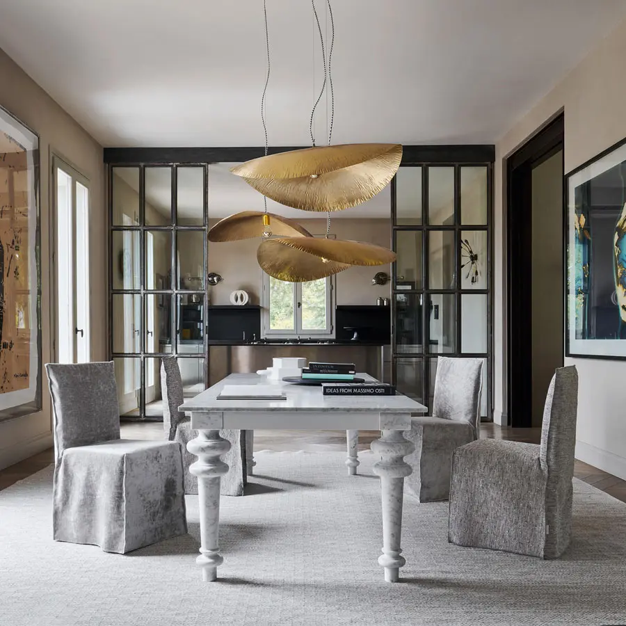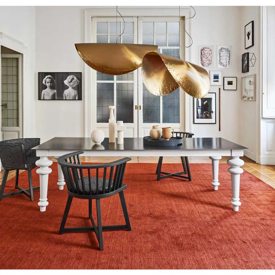 El estilo vintage y un diseño contemporáneo caracterizan a la familia de mesas Gray 32/33/34/35. Disponibles en variados tamaños, con tablero cuadrado o rectangular, suman diferentes materiales que se unen para dar origen a múltiples combinaciones. Al tablero de duelas contrachapadas de nogal o roble, mármol blanco de Carrara o chapa de hierro encerada, están unidas cuatro patas de nogal o roble, de porcelana blanca, mármol blanco de Carrara o fundición de aluminio pulido, con elegante torneado triple. Acabados de madera disponibles: nogal Canaletto pintado natural, roble blanqueado o roble lacado en blanco, gris, negro, océano o tórtola.