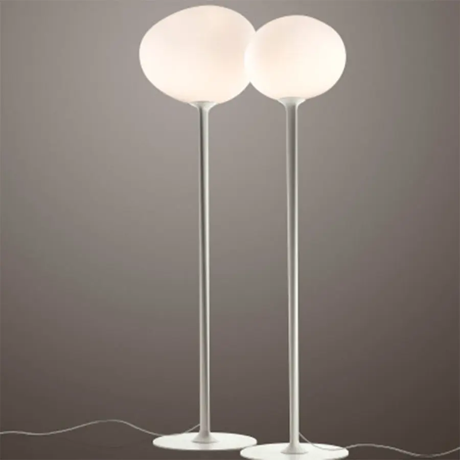 Fruto de una inspiración natural y una profunda investigación, la forma de Gregg recuerda un gran cuenco alisado por el agua, o un huevo de un animal mitológico, símbolo de creación y regeneración. Un volumen puro y familiar por su facilidad de lectura, pero sorprendente, porque la forma asimétrica de Gregg cambia de imagen según el punto de vista de quien la observa. La versión de suelo se encuentra disponible en dos alturas, estandardizadas para acoger el difusor medio o grande. Resultado: cuatro diversas soluciones para multiples posibilidades de aplicación. En la versión pequeña se puede utilizar para leer, para iluminar un ángulo con un asiento de forma discreta pero eficiente, en la versión grande es perfecta como señal o para destacar una área con la radiosidad suave y uniforme que la caracteriza. En ámbito doméstico, la luz cálida irradiada por el difusor satinado blanco y el estilo esencial tienen un fuerte valor funcional y decorativo.
