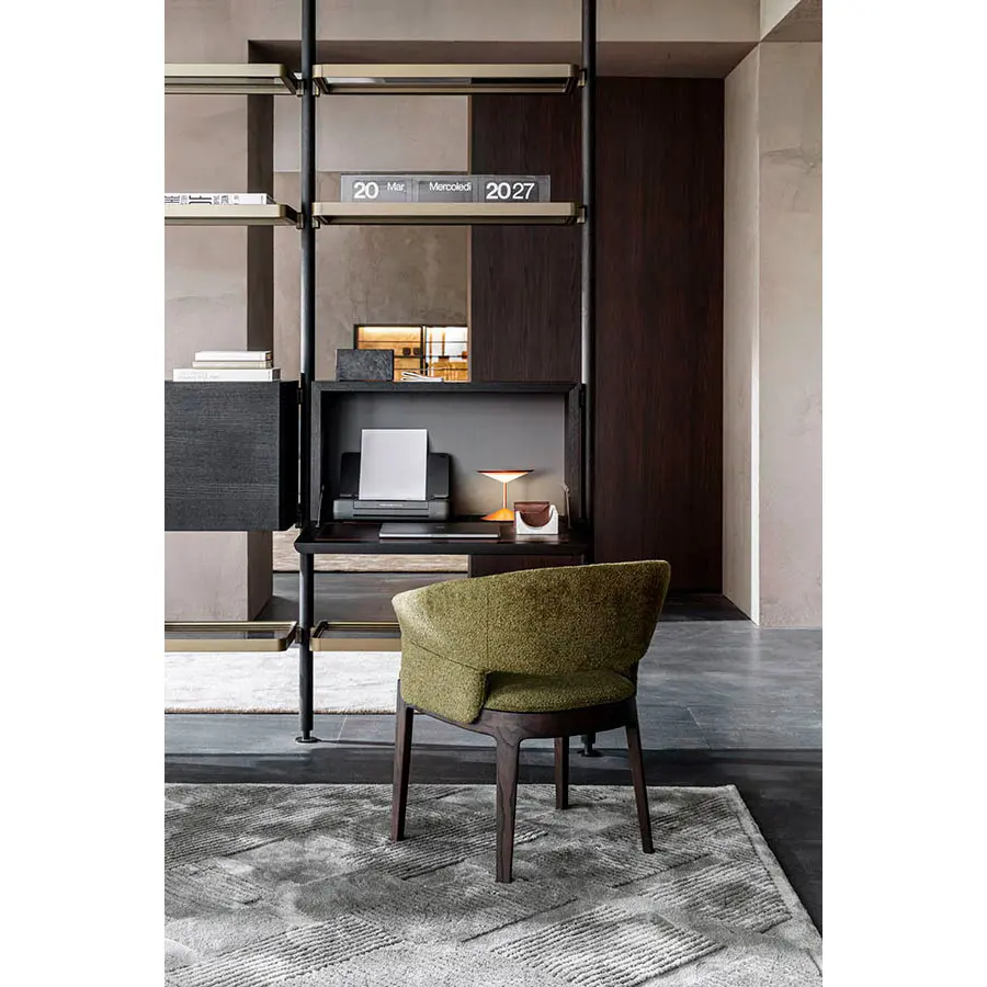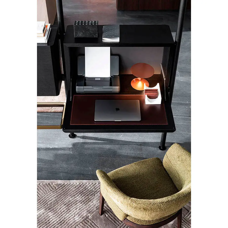 Vincent Van Duysen con el proyecto Hector se asoma al mundo de las librerías componibles con montante. La librería permiten realizar composiciones muy aéreas, de cualquier longitud y altas a gusto, gracias a los elementos modulares que la componen. Las diferentes combinaciones de acabado posibles plasman composiciones muy diferentes las unas de las otras por su impacto visual y las formas agradables.