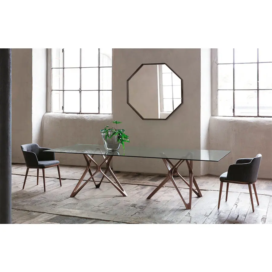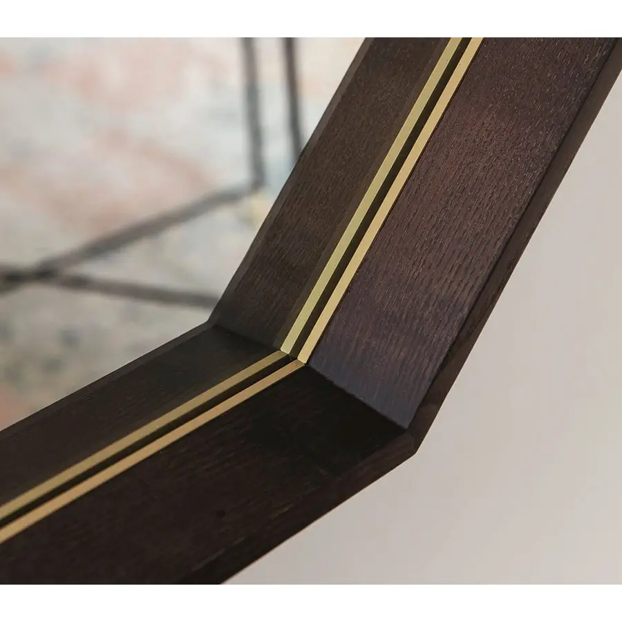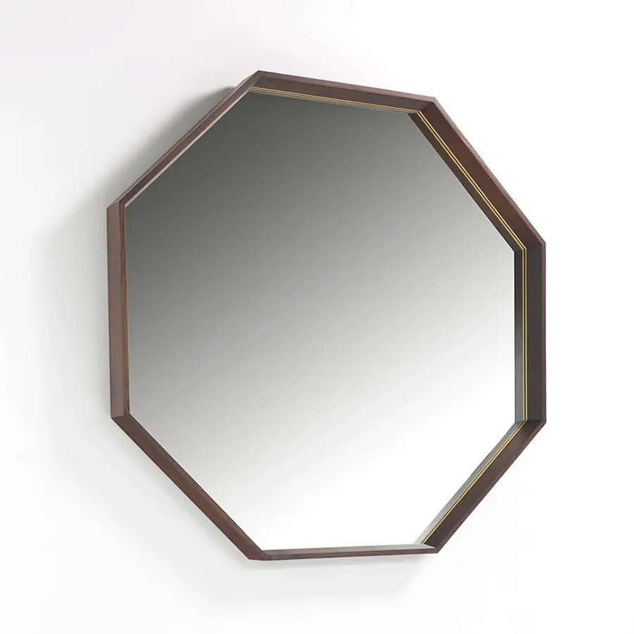Espejo octagonal de pared con marco en fresno macizo con inserciones en latón cepillado.