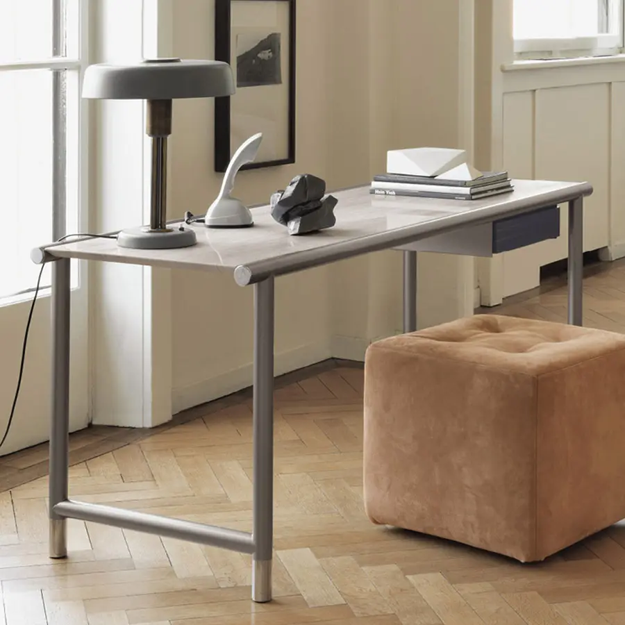 La estructura de la consola es en tubular de acero con acabados beige brillo o bruñido mate y detalles en oro brillo o níquel negro brillo.