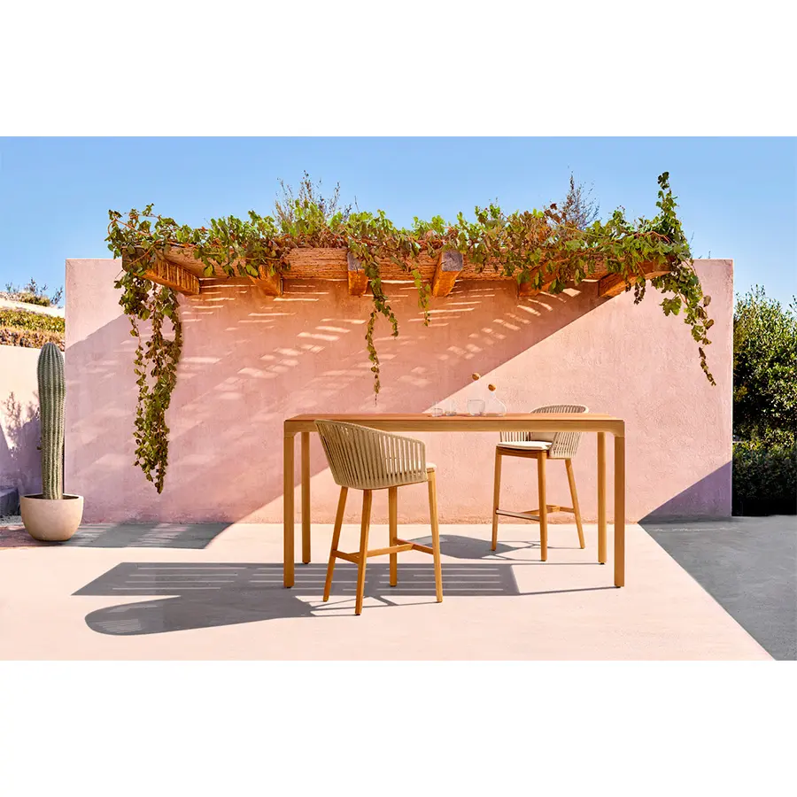 Los diseños más sencillos pueden ser los más satisfactorios. La mesa de bar Illum es una sutil declaración de estilo y consigue el ambiente perfecto para los aperitivos al aire libre, especialmente si se combina con nuestras sillas de bar CTR.