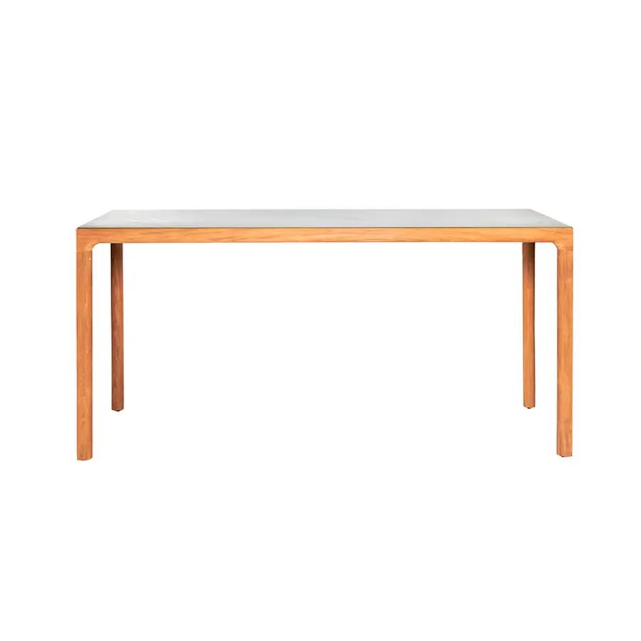 Las líneas suavemente curvadas de la delgada estructura de aluminio parecen más talladas que moldeadas. La parte superior se puede pedir en teca o en una gran variedad de acabados cerámicos de color.