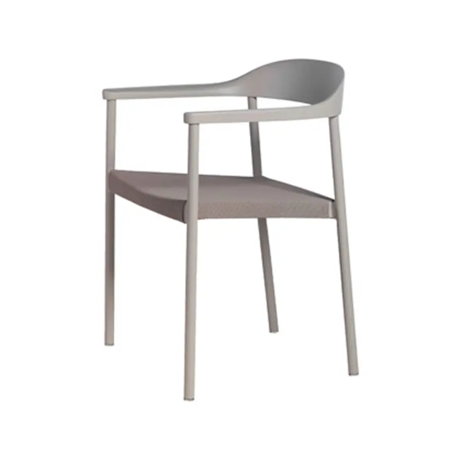 El suave respaldo curvado ofrece una vista acogedora y cómoda. El asiento está realizado en Batyline con un sutil tejido.Una elección que favorece tanto al aspecto como la durabilidad del Batyline porque es sumamente fuerte, resistente a los rayos UV, de secado rápido y repele a la suciedad y a la humedad.