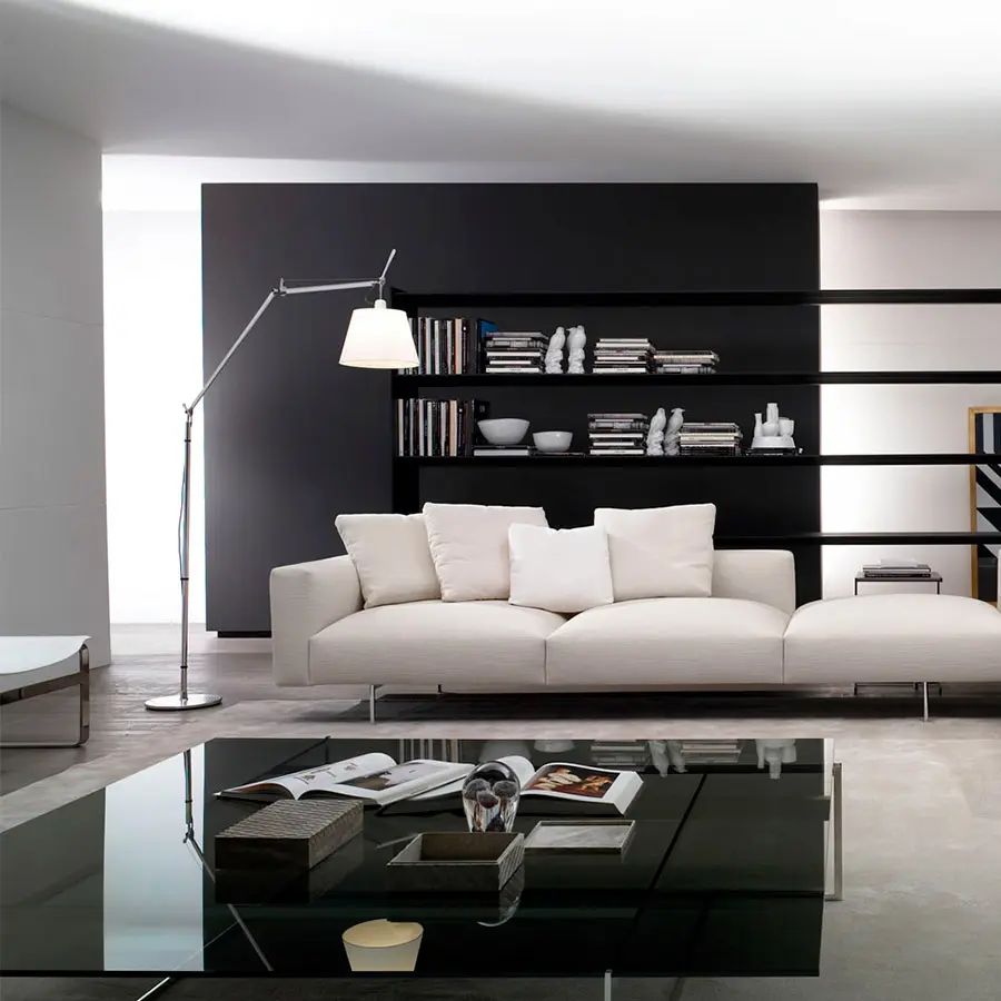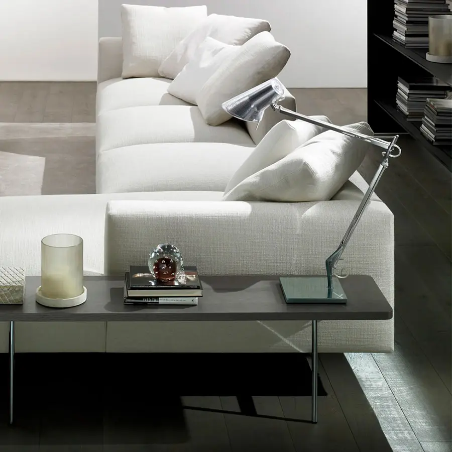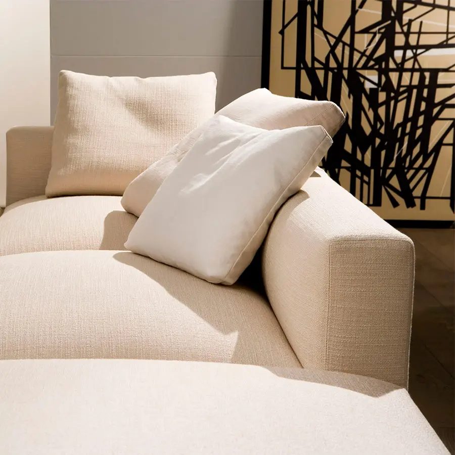La colección Jackson se concibe como un producto lineal cerca del diseño más minimalista. La masividad de su todo su volumen se presenta sustentada únicamente por unas finas patas de acero en sus extremos. El bastidor metálico que lo constituye permite la creación de sofás de hasta tres metros treinta con el apoyo único de cuatro patas.