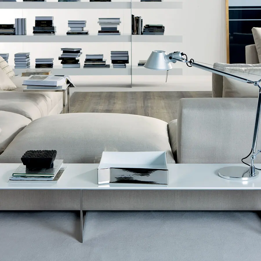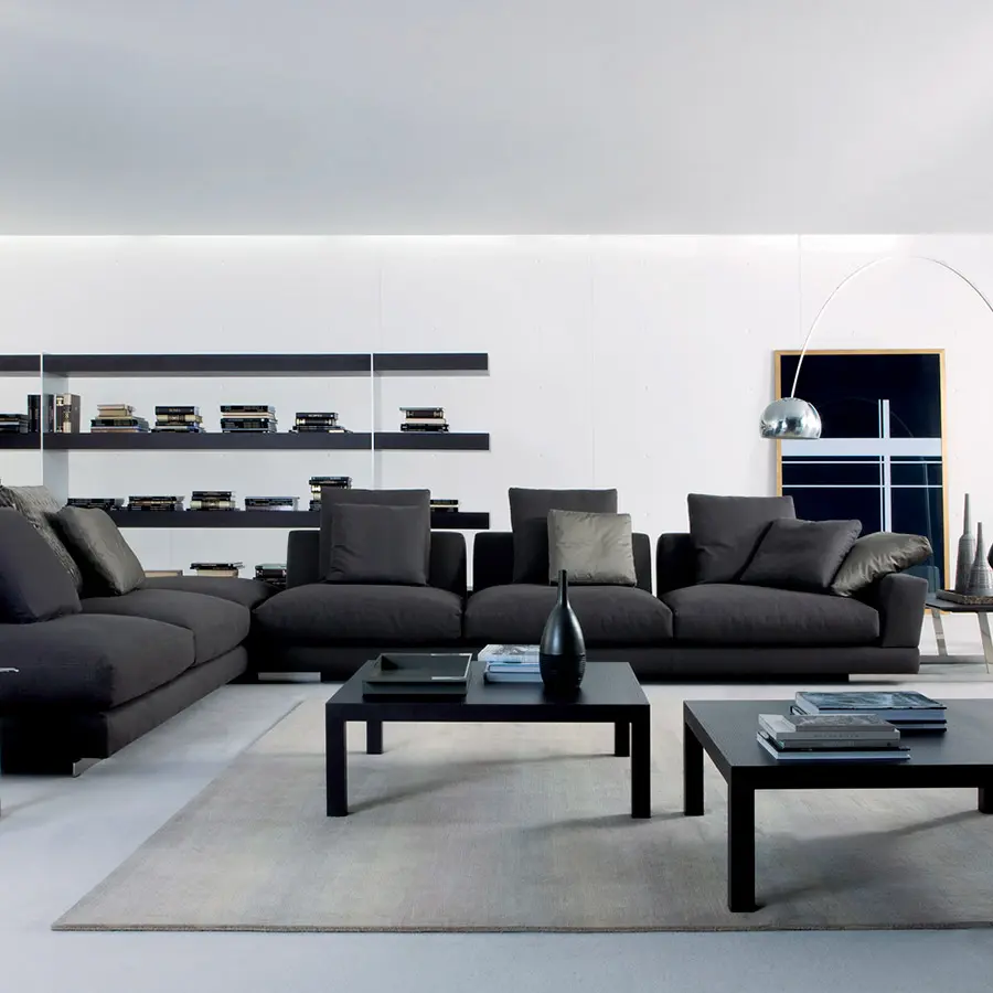 La colección James se concibe como un producto atemporal pero al mismo tiempo ligado a las actuales tendencias del diseño. Su fuerza principal se radica en el confort, de ahí el gran número de cojines que aporta, los cuales permiten jugar con la profundidad de sentada del mismo. Otra característica del sistema James, es la opción de colocar mesas laterales y/o traseras ligadas a la propia base del sofá mediante piezas de acero inoxidable que al mismo tiempo hacen la función de apoyo del sofá contra el suelo.