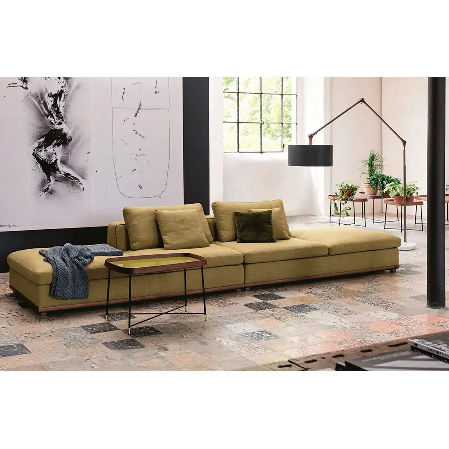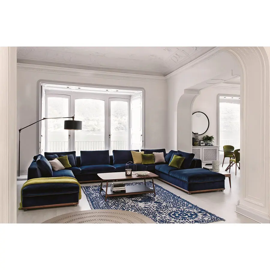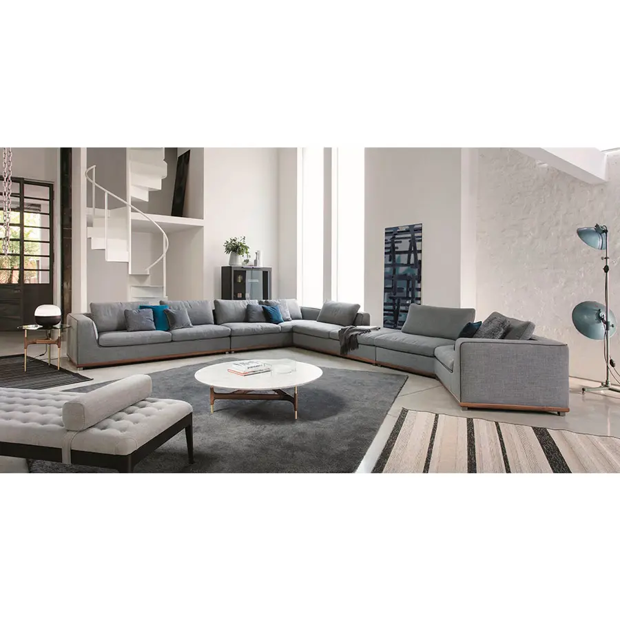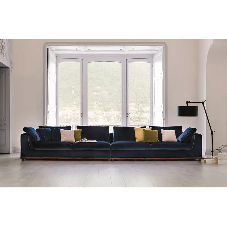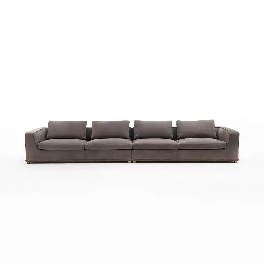 Sofá con estructura en nogal canaletta macizo y revestimiento desenfundable en las telas de la colección. Pies en metal gris peltro. No hay un ambiente al que Kirk no pueda adaptarse gracias a su amplia modulación. Estructura de madera maciza ycontrachapado, revestidos con poliuretano expandido de alta densidad. Cojines del asiento y respaldos llenados con plumas etiqueta Oro con inserción de poliuretano expandido de alta densidad (de densidad diferenciada en los cojines del asiento) y revestidos con tela de algodón antipluma. Revestimiento de la estructura en telas desenfundable, removiendo la base a través de los tornillos debajo de la misma. Revestimiento de los cojines siempre desenfundable.