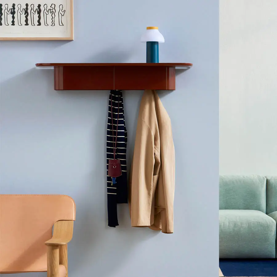El estante Korpus forma parte de una serie de coloridas estanterías montadas en la pared creadas para HAY por el diseñador de productos noruego Andreas Bergsaker. Basada en el deseo de crear una estantería duradera y versátil a partir de material reciclable, la estantería Korpus está hecha de lámina de aluminio, conocida por su ligereza, resistencia y capacidad para ser reutilizada innumerables veces. El aluminio pasa por un proceso industrial de estampado y perforación para formar la columna y la parte superior distintivamente curvadas. Las ranuras con forma de cerradura en la parte posterior facilitan el montaje, mientras que los ganchos ocultos en la columna ofrecen posibilidades adicionales de colgado. Disponible en una amplia gama de tamaños y colores, estas versátiles estanterías pueden ser utilizadas en diferentes habitaciones del hogar, como perchero en el pasillo, almacenamiento de utensilios de cocina, colgar toallas en el baño o mostrar adornos en la sala de estar.