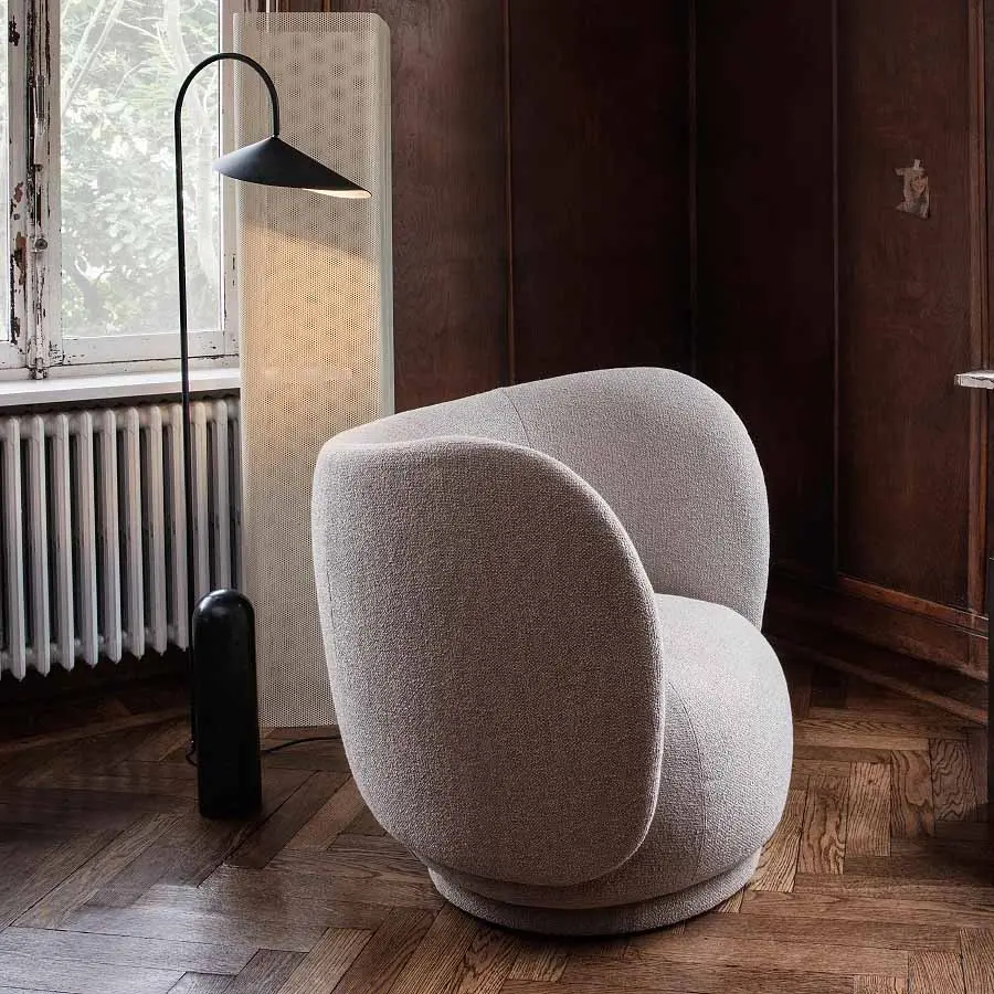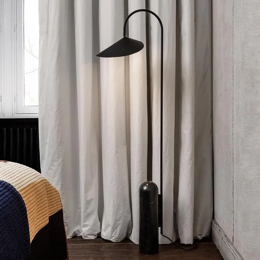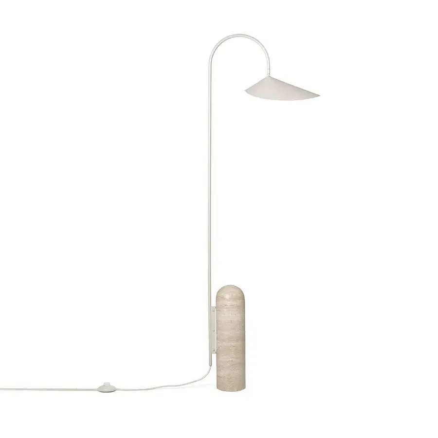 Inspirada y nombrada en honor a la planta Arum, esta lámpara de pie combina un diseño moderno y elegante con materiales de calidad, creando una pieza funcional y llamativa. La forma geométrica de la lámpara está sostenida por una base sólida de mármol que sirve como contrapeso, mientras que su pantalla flexible y aplanada se puede ajustar para distribuir la luz de manera uniforme. Perfecta como lámpara de lectura junto a un sillón o sofá, su diseño elegante y minimalista puede integrarse en una variedad de entornos contemporáneos.