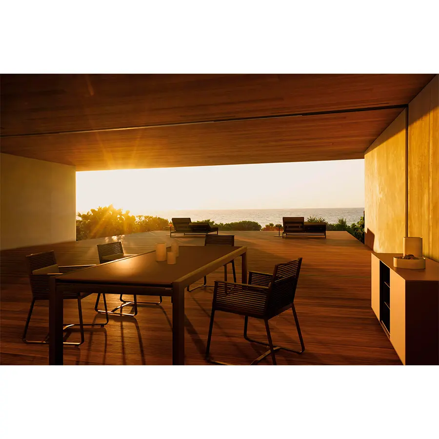 Kettal Landscape diseñada por Kettal Studio recurre a formas arquitectónicas modernas que pondrán en valor la naturaleza de los entornos exteriores. Un sistema muy completo que se compone de “daybeds”, pérgolas totalmente configurables y muebles de aluminio personalizables que se integrarán perfectamente en entornos naturales. La calidad del nuevo tejido estructurado Natte, el volumen y confort de de las confección es así como la modernidad de sus proporciones le confieren un aspecto elegante.