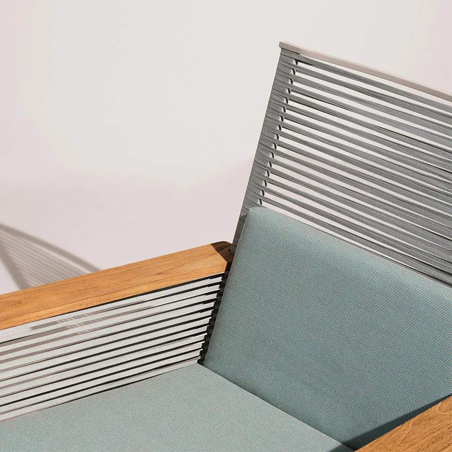 Butaca de aluminio con brazos de Teca disponibles en todos los colores de la colección.
