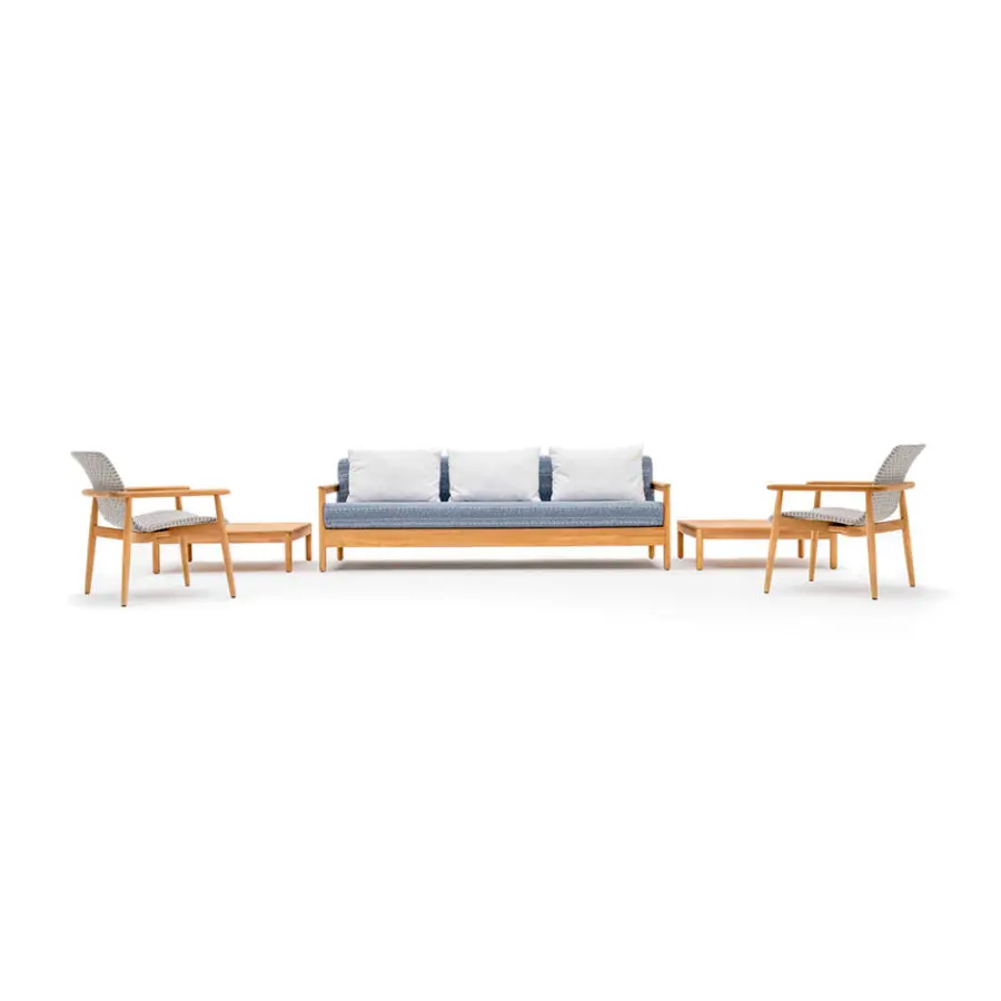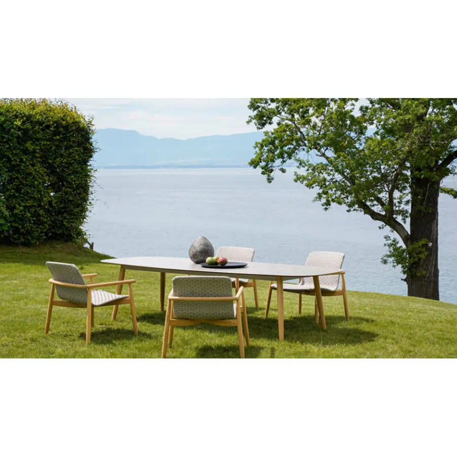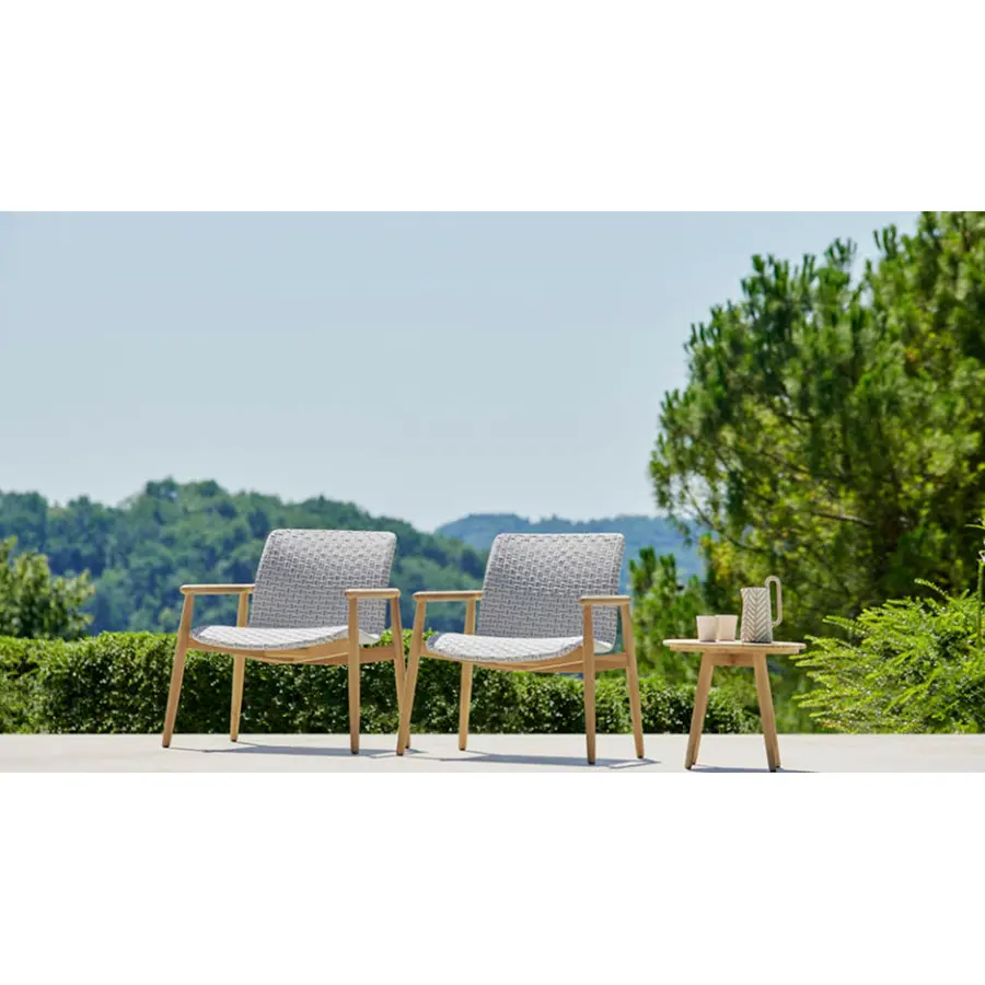 El sillón lounge de la colección LAPIS destaca por su personalidad simple, una línea esencial con un fuerte aspecto natural, con una estructura hecha de madera de teca sólida de plantación certificada. El diseño y el material de la colección se refieren a un concepto de materia prima, a la integración perfecta entre la madera y el entorno exterior. Su tamaño cómodo y un asiento espacioso y agradable garantizan una relajación total para cada espacio y ambiente al aire libre: jardines, terrazas y balcones, porches, patios, piscinas.