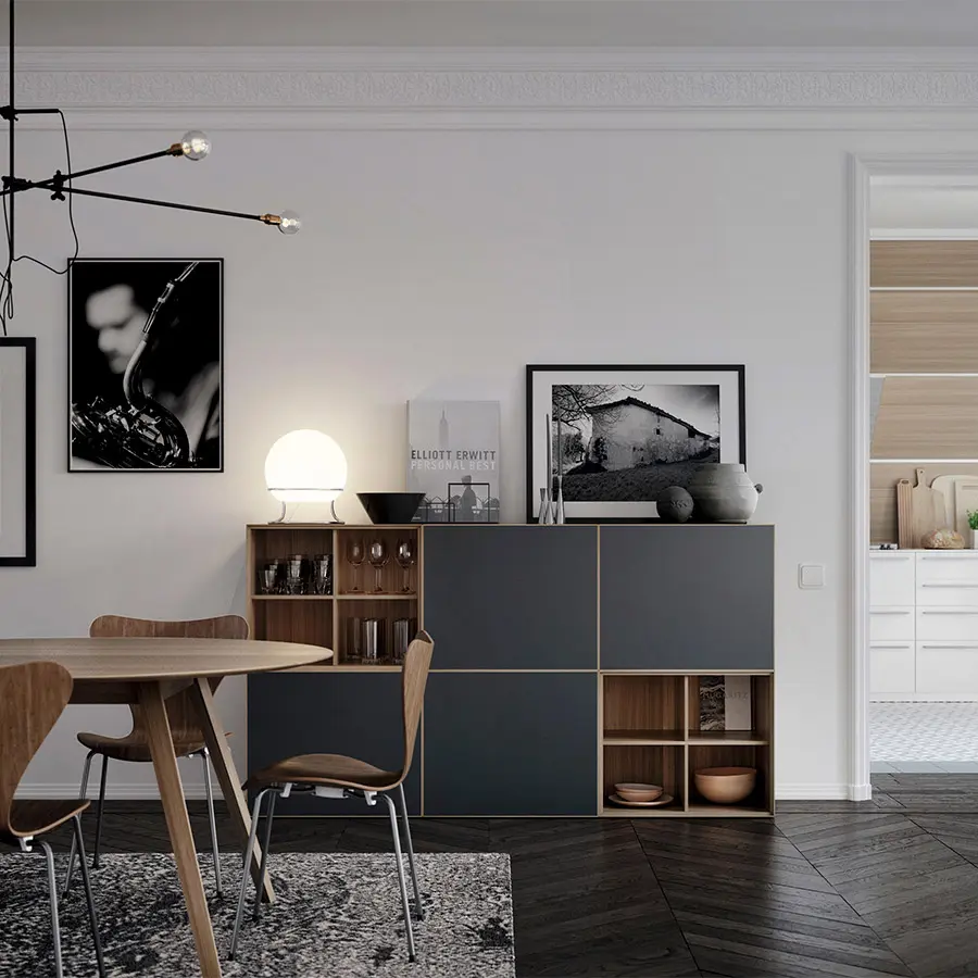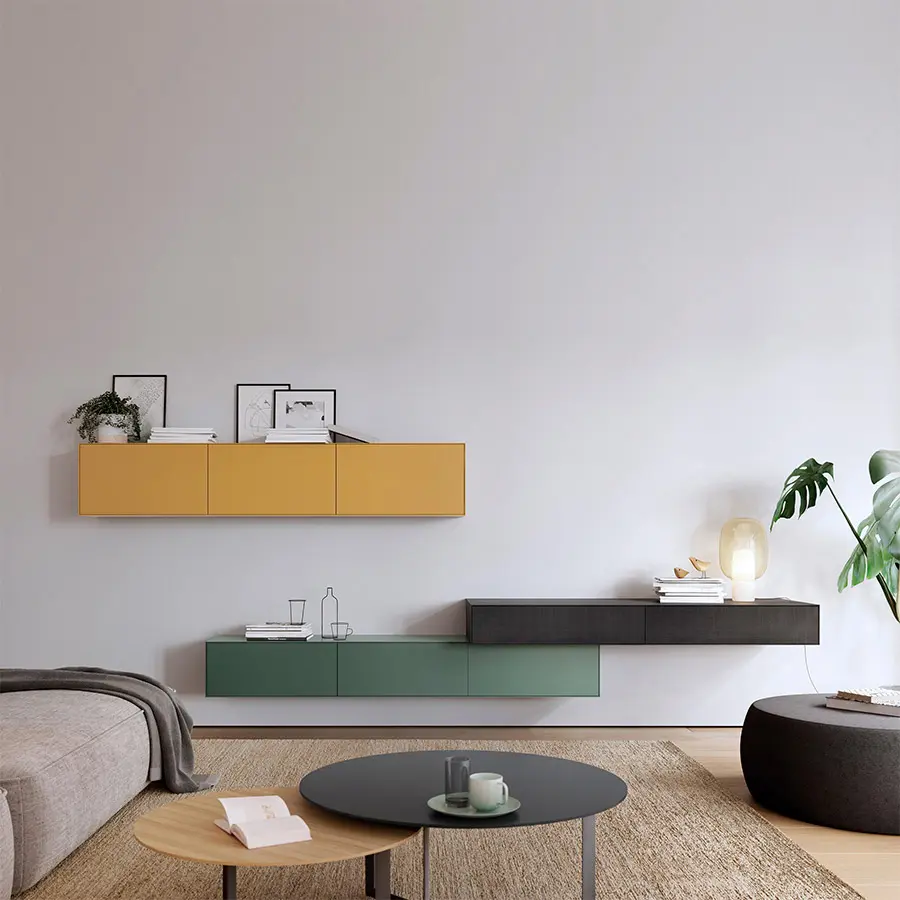 La colección Lauki está compuesta de múltiples cajas que se pueden colocar en el suelo, apilar entre ellas y colgar a la pared. Además, se ofrecen en una gran cantidad de medidas, acabados y funciones (cajones, puertas, módulos abiertos…). Todo ello permite crear infinidad de configuraciones válidas para cualquier estancia. Por ejemplo, un solo módulo puede ser utilizado como mesilla al lado de una cama o como cajonera para una oficina. Con unos pocos módulos podemos configurar una solución para el recibidor o cualquier otro rincón de la casa. Y con varios módulos podemos configurar un mueble para la televisión, un aparador e incluso una cómoda para la oficina.