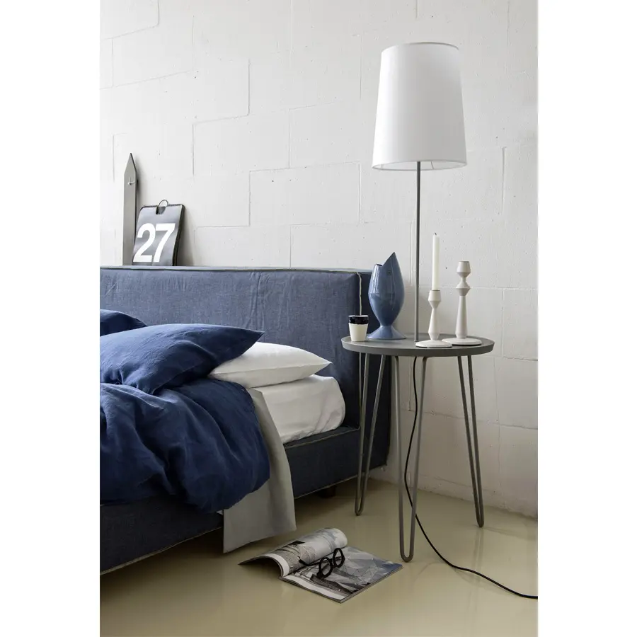 La mesita de centro o de noche LC 47 combina funcionalidad y estética: lámpara-mesita de centro con una estética sobria que resalta su gran ligereza visual, lograda por la unión de diferentes materiales. Por un lado, el acero pintado de blanco o gris con acabado mate de las patas y el pergamino blanco de la pantalla, por otro, el nogal Canaletto natural, negro, blanco, gris, océano o tórtola del tablero.