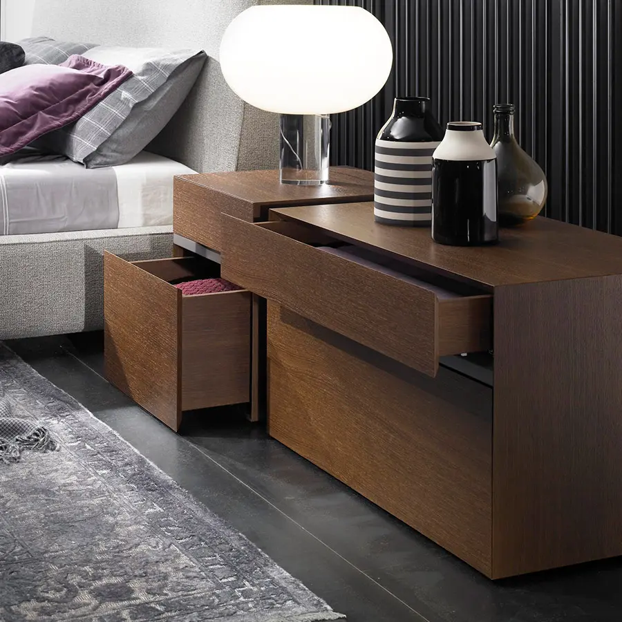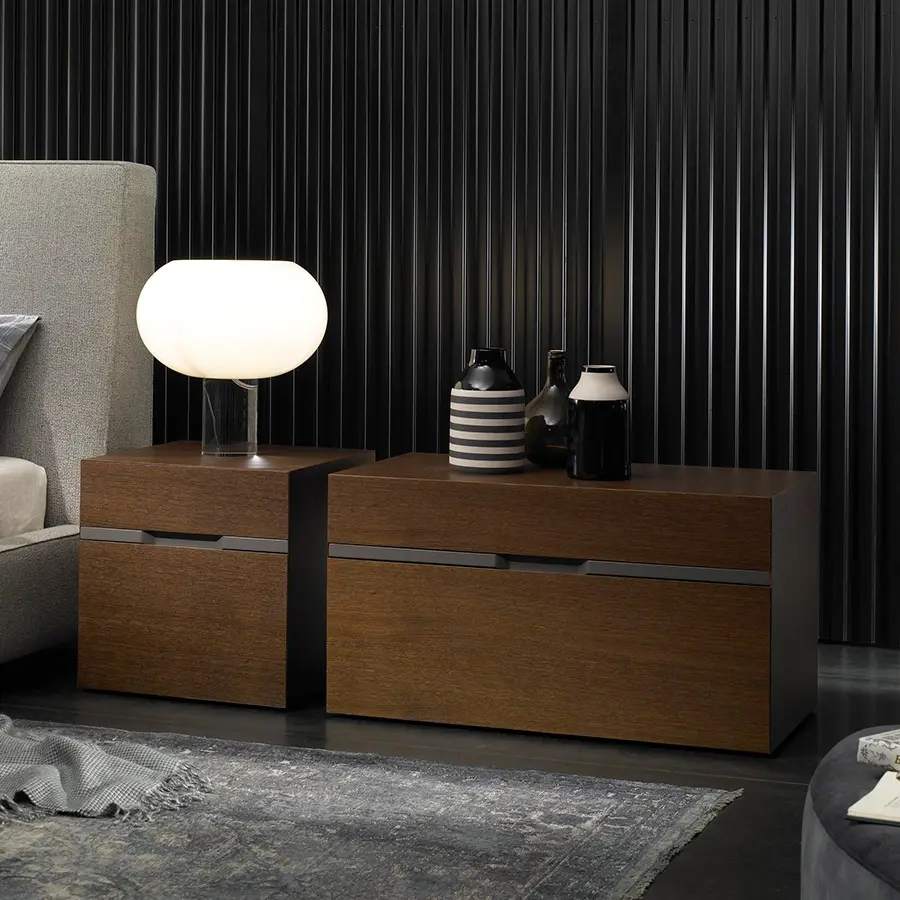La colección de muebles Lineal se presenta como un conjunto de piezas compuesta por: mesitas de noche y escritorios. Las mesitas y el escritorio están realizados en una única pieza de madera ensamblada y terminada a mano. Las mesitas disponen de dos cajones de distinto tamaño en altura separados por una tira mecanizada y lacada, que hace las funciones de tirador. Este elegante detalle artesanal ensalza la personalidad de toda la colección. Linael se realiza en distintas medidas y acabados que permiten su ubicación en cualquier espacio de hoy.