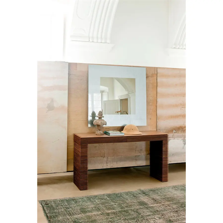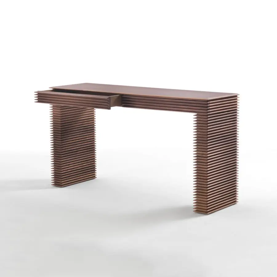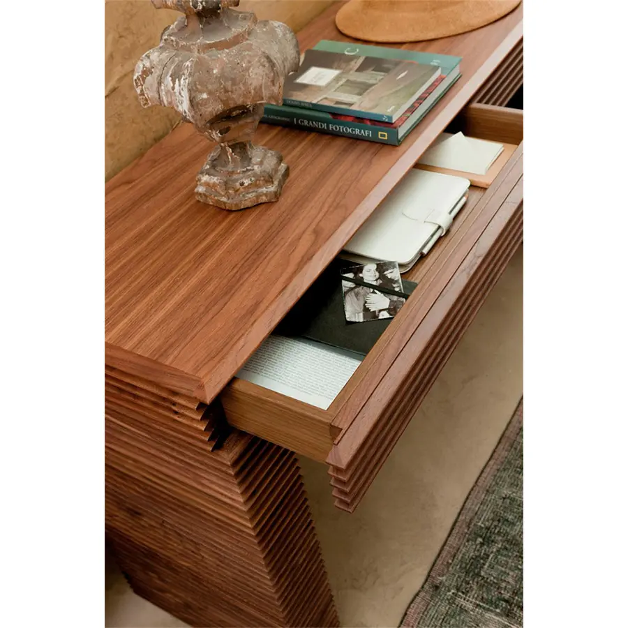 Consola en nogal canaletta con dos cajones. Dimensiones 140x40x76H