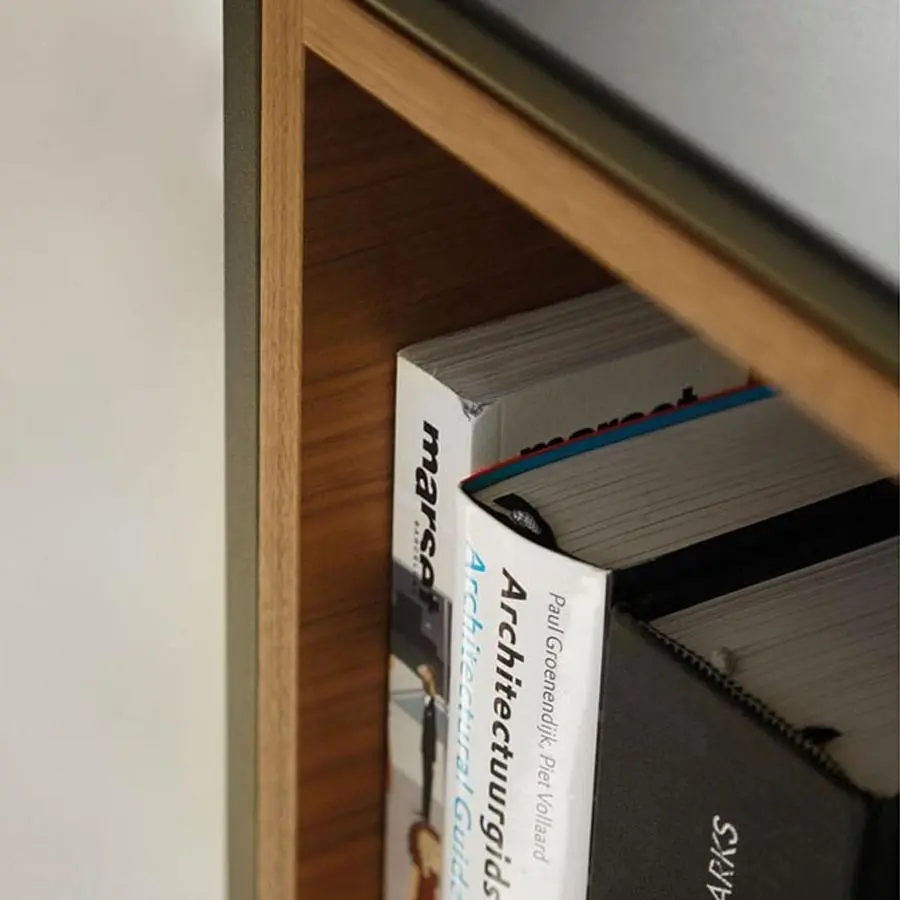 Colección de estanterías con carros, estanterías, aparadores y muebles de televisión inspirados en la clásica y mítica estantería “La Literatura” diseñada en 1985 y ganadora de premios y distinciones como la selección ADI FAD del 1986. Exhibida en Museos y con una contribución indiscutible a la obtención por punt del Premio Nacional de Diseño en 1997. Catalogada como un clásico contemporáneo desde el año 1997. Su inconfundible carro sobre ruedas ha servido durante décadas para almacenar infinidad de libros, así como acoger la era digital e integrarse con equilibrio, belleza y emoción en todo tipo de arquitectura e interiorismo. En esta versión, la OPEN, diseñada en el 2014, los volúmenes se vuelven transparentes y todavía más ligeros, a la vez que se pueden incorporar contenedores y abriéndose la posibilidad de generar divisiones de ambientes. Estantes fijos. Base con pies regulables.
