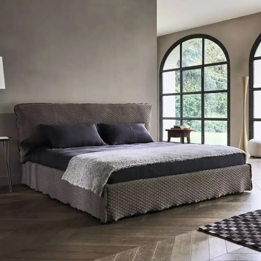 Las líneas suaves y acogedoras y un perfil en costura francesa definen a la cama LOLL 80. Disponible en varios tamaños, desde la versión matrimonial estándar hasta las variantes queen o king size, Loll 80 tiene una estructura desmontable, caracterizada por la ligera funda extraíble que parece rozar el suelo, que se combina además con un confortable cabecero revestido. Disponible, opcionalmente, con compartimiento contenedor.