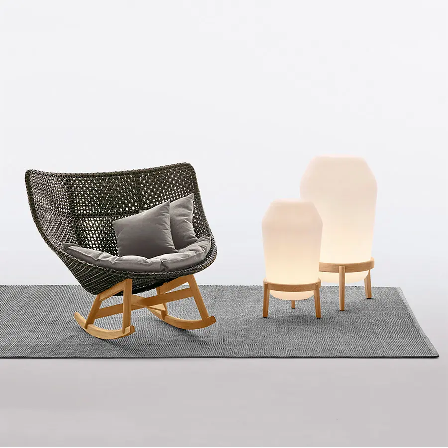 LOON, diseñado por Sebastian Herkner y flamante ganador del ICONIC AWARDS 2018 en la categoría de Interior Innovador es un globo de luz con base de una excelente madera de teca. Proyecta una luz cálida ideal para crear ambiente en el exterior y lo hace con la elegancia y personalidad de una lámpara de interior. Complemento natural de la galardonada colección Mbrace, también de Herkner, LOON puede complemente a la perfección cualquiera de las colecciones de DEDON.