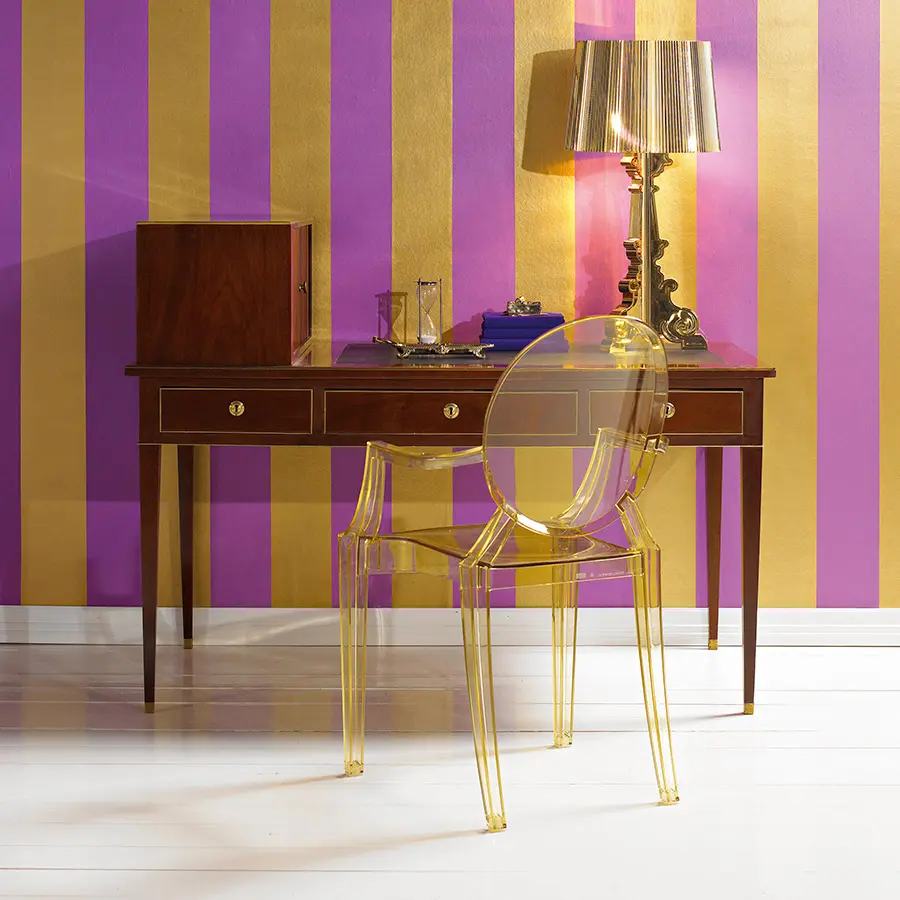 Un cómodo sillón en policarbonato transparente y de color en el estilo Luis XV, es la quintaesencia del barroco revisitado para deslumbrar, emocionar y cautivar. Louis Ghost es el ejemplo más atrevido en el mundo del policarbonato inyectado en un solo molde. A pesar de su aspecto evanescente y cristalino, Louis Ghost es estable y duradero, resistente a los golpes y a la intemperie, y también se puede apilar a seis. Este artículo tiene un gran encanto y un atractivo visual considerable y aporta un toque de elegancia e ironía a cualquier estilo de hogar o área pública. Las sillas Louis Ghost se pueden personalizar en cuatro temas estándar y con otros artículos a pedido específico del cliente con pedidos mínimos de 10 piezas.