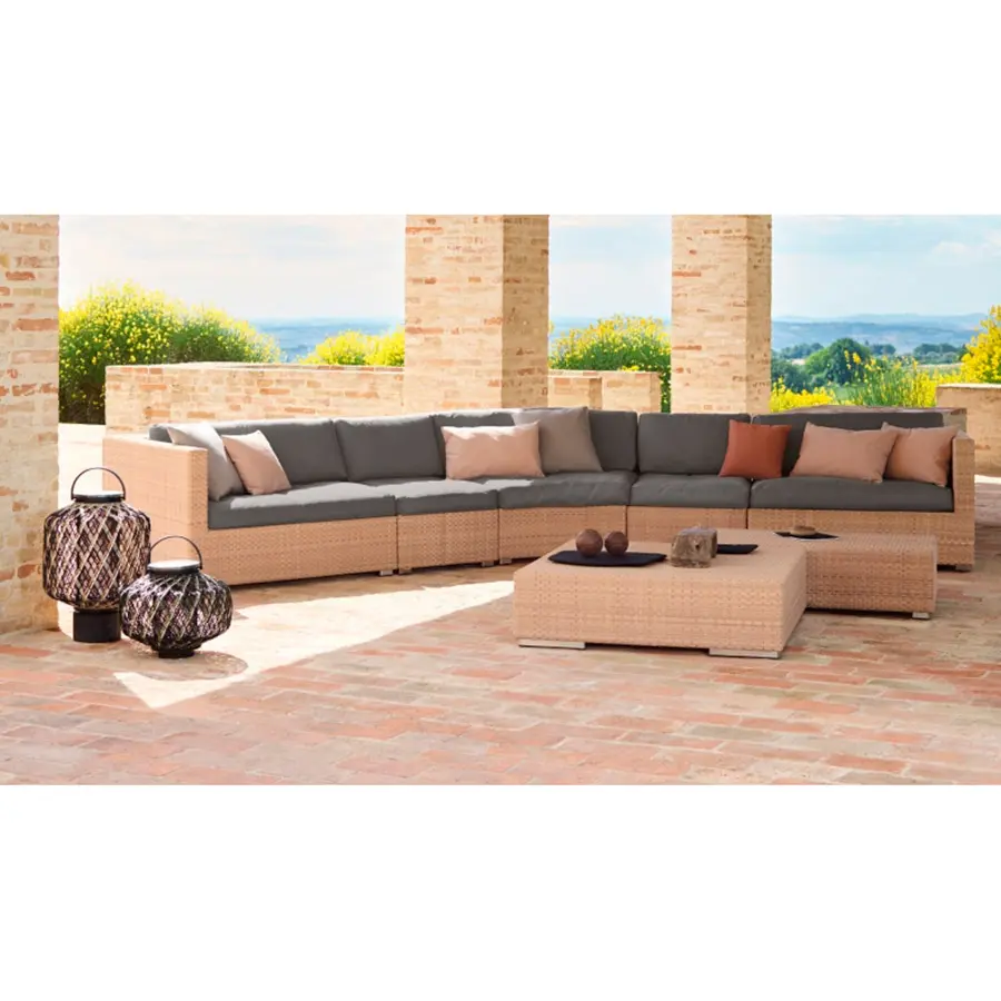 Un sistema único de horquillas mantiene los módulos en su sitio, mientras que los gruesos cojines garantizan el máximo grado de comodidad de este diseño minimalista.