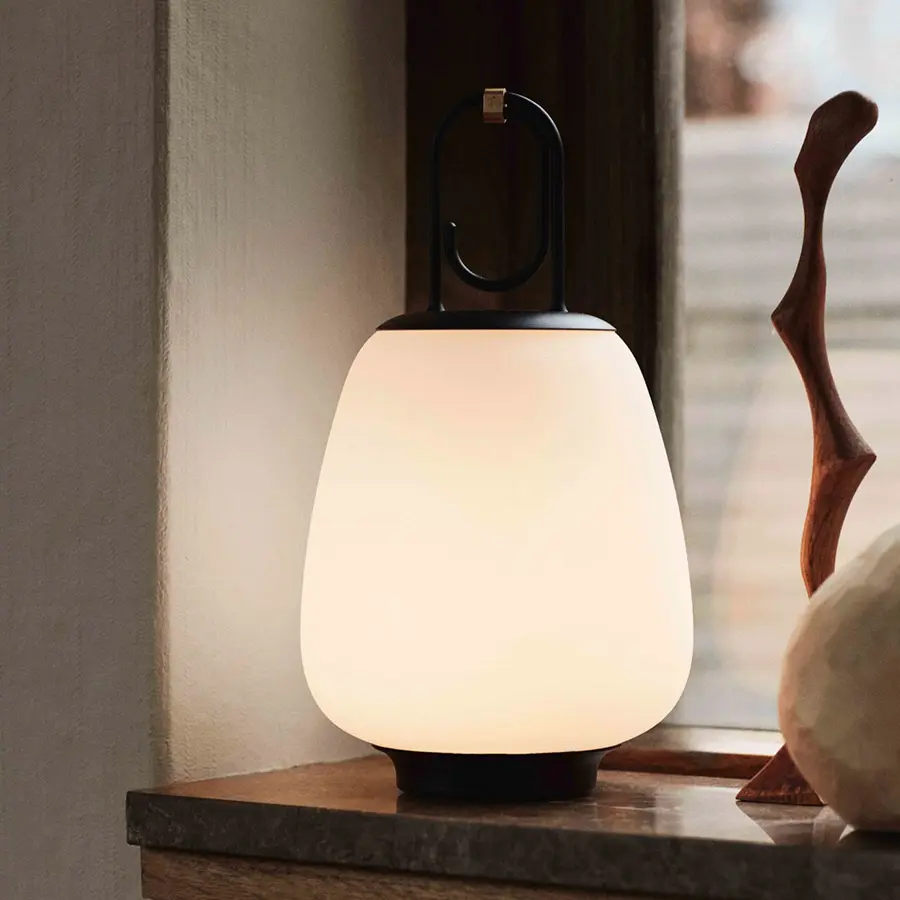 Esta lámpara debe su nombre a la ciudad de Lucca, en el norte de la Toscana. La inspiración provino del hermoso resplandor dorado que luce en las pintorescas ciudades costeras del Mediterráneo. Definida por una suave estructura redondeada de cristal opal, y contenida por elegantes curvas de metal negro, el diseño elegante y compacto crea un ambiente acogedor y relajante. Adecuado tanto para uso interior como exterior, es una pieza versátil que puede trasladarse para iluminar un espacio al aire libre, colocarlo en una mesita de la sala de estar, o enganchada a una pared de una habitación.