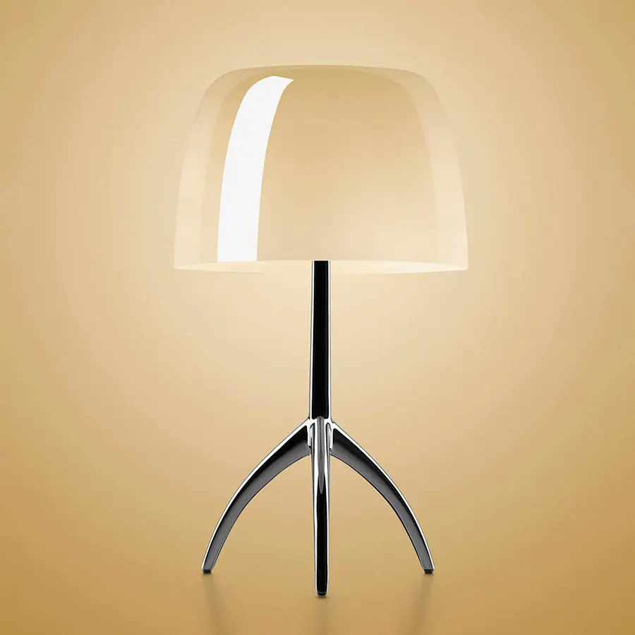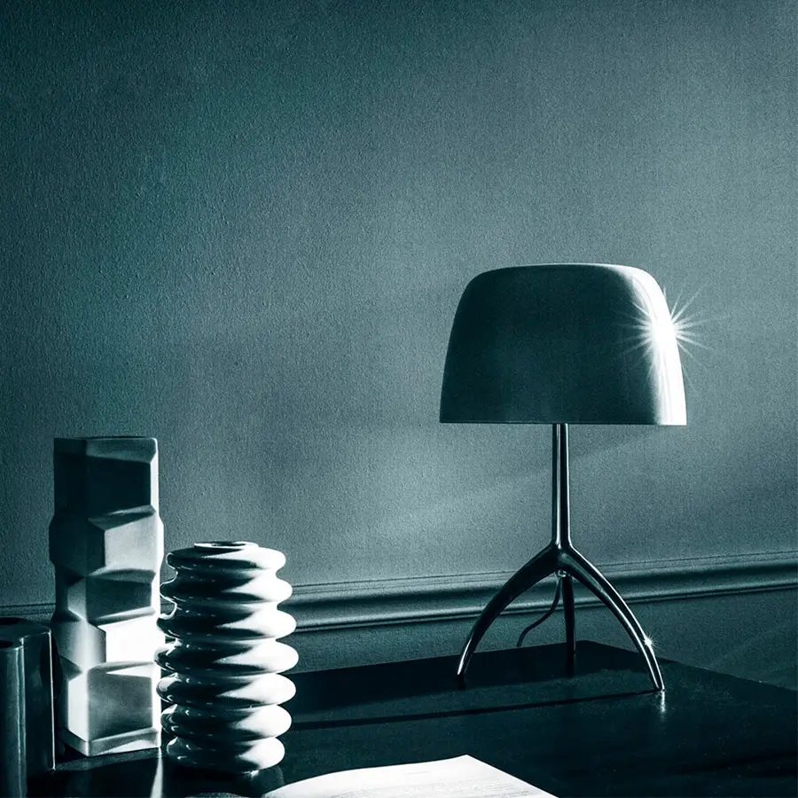 Revisión de la clásica lámpara de mesa con pantalla, Rodolfo Dordoni diseñó en 1990 Lumiere que se convirtió enseguida en uno de los best seller de la colección Foscarini, caracterizada por la combinación inédita y armoniosa entre la forma esencial del vidrio soplado a boca del difusor y el esbelto soporte con el característico trípode en aleación de aluminio. En 2015 se renovó la lámpara con la propuesta de nuevas tonalidades cromáticas del difusor – siempre blanco en la capa interna para favorecer la reflexión de la luz – y un nuevo acabado para el trípode, demostrando la sorprendente actualidad de una de las piezas “cult” de la colección. La refinada elegancia de Lumiere, la disponibilidad de dos medidas y cuatro colores distintos junto a su luz difusa, cálida e intensa hacen que sea perfecta para ser colocada en diferentes ambientes, distintos por estilo y gusto.
