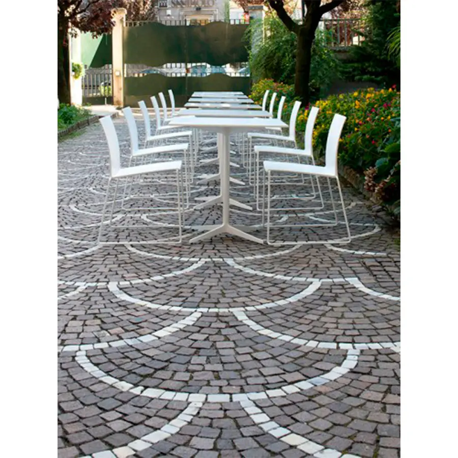 Para esta silla hoy, se pueden seleccionar diferentes tonos: azul de aviación, barro, polvo, verde, plomo, así como el blanco tradicional. Un color, una emoción para satisfacer las necesidades de los diferentes entornos: desde el hogar (cocina, sala de estar y dormitorio) hasta espacios de negocios, como oficinas, salas de conferencias, y lugares públicos, como bares y restaurantes.