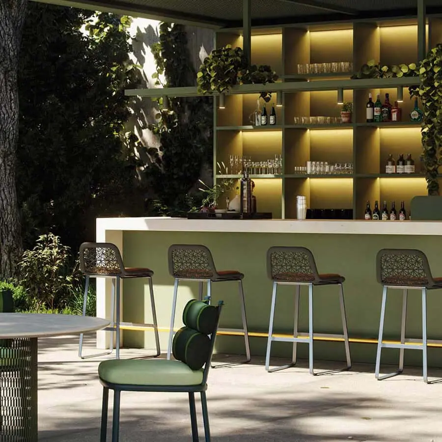 Como una arquitectura se abre a su entorno, la colección Kettal Maia diseñada por Patricia Urquiola muestra una ligereza y una naturalidad elegante. El diseño del trenzado artesanal, la solidez de la estructura de aluminio y la nueva colección de tejidos de porotex y chenille crean una combinación llena de energía. La colección ha sido elegida uno de los diseños más representativos de nuestro siglo.