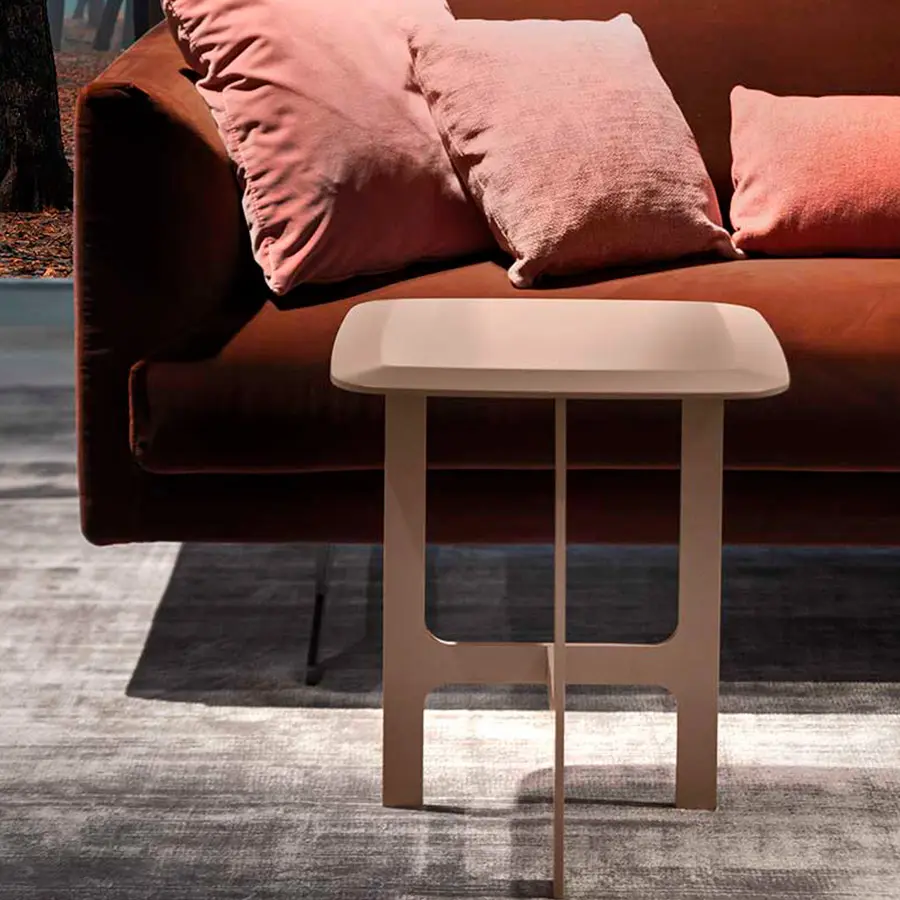 Inspirado en la geometría cartesiana y la posibilidad de crear superposiciones e intersecciones que sirven para un propósito doméstico. Las formas geométricas se suavizan significativamente mediante la superposición de las tapas redondeadas y las vigas de conexión del marco de metal.