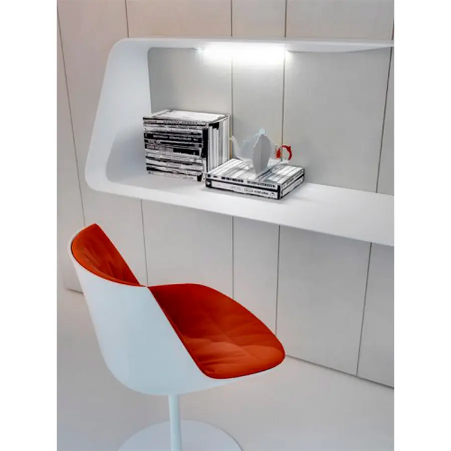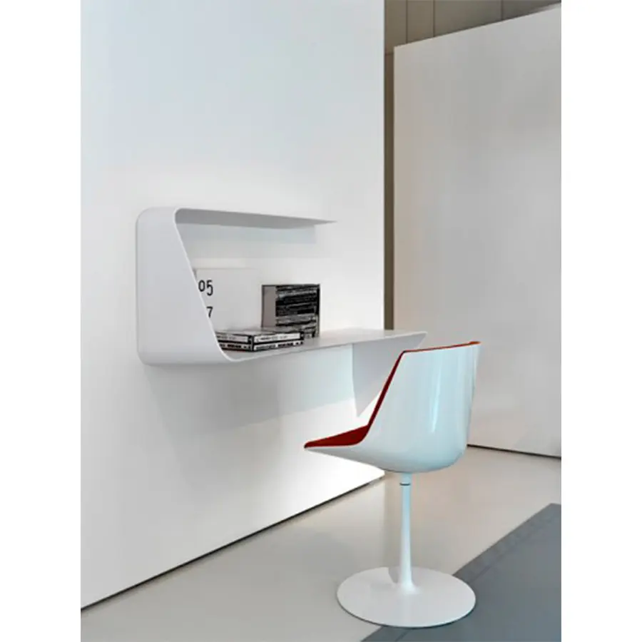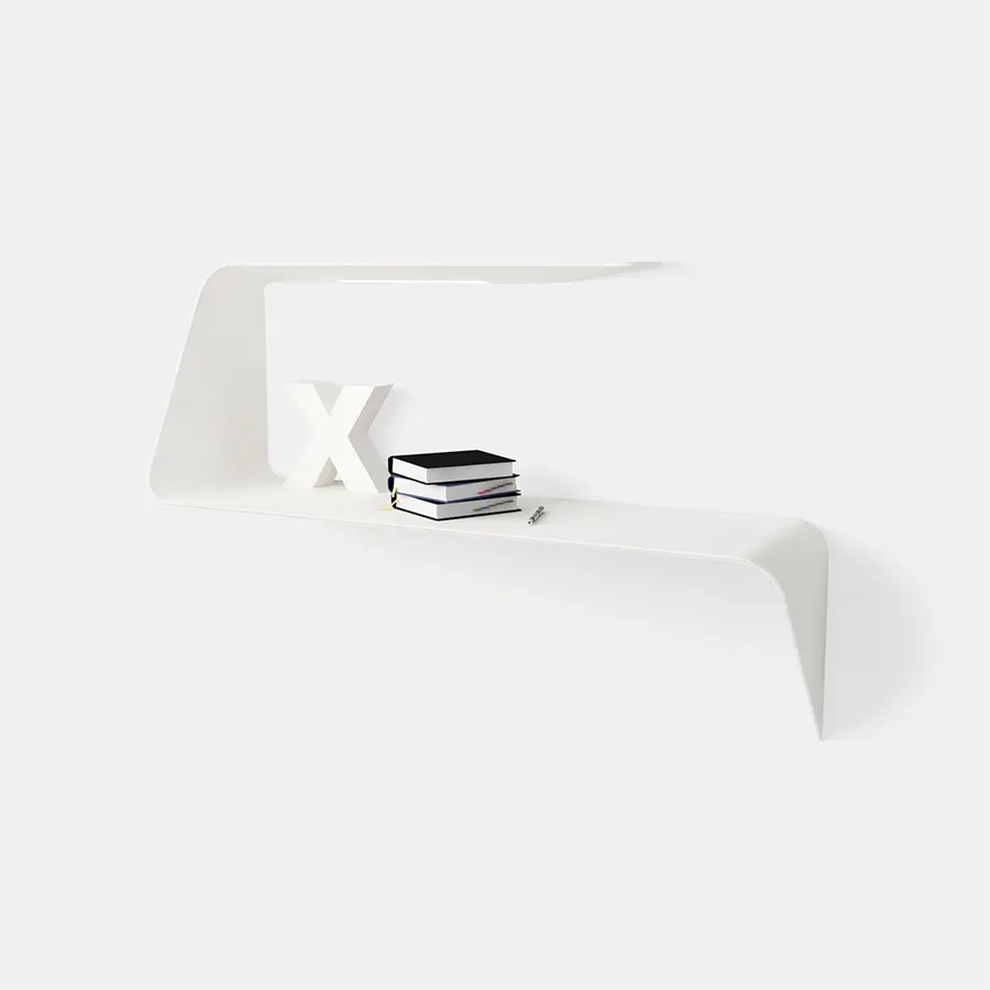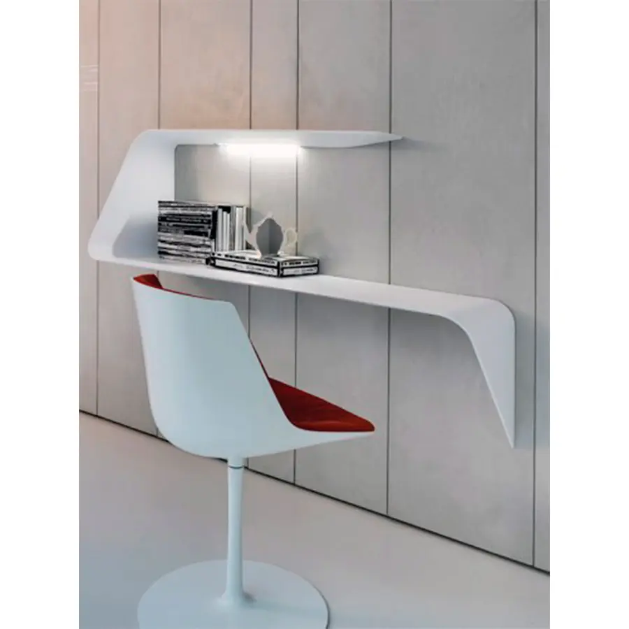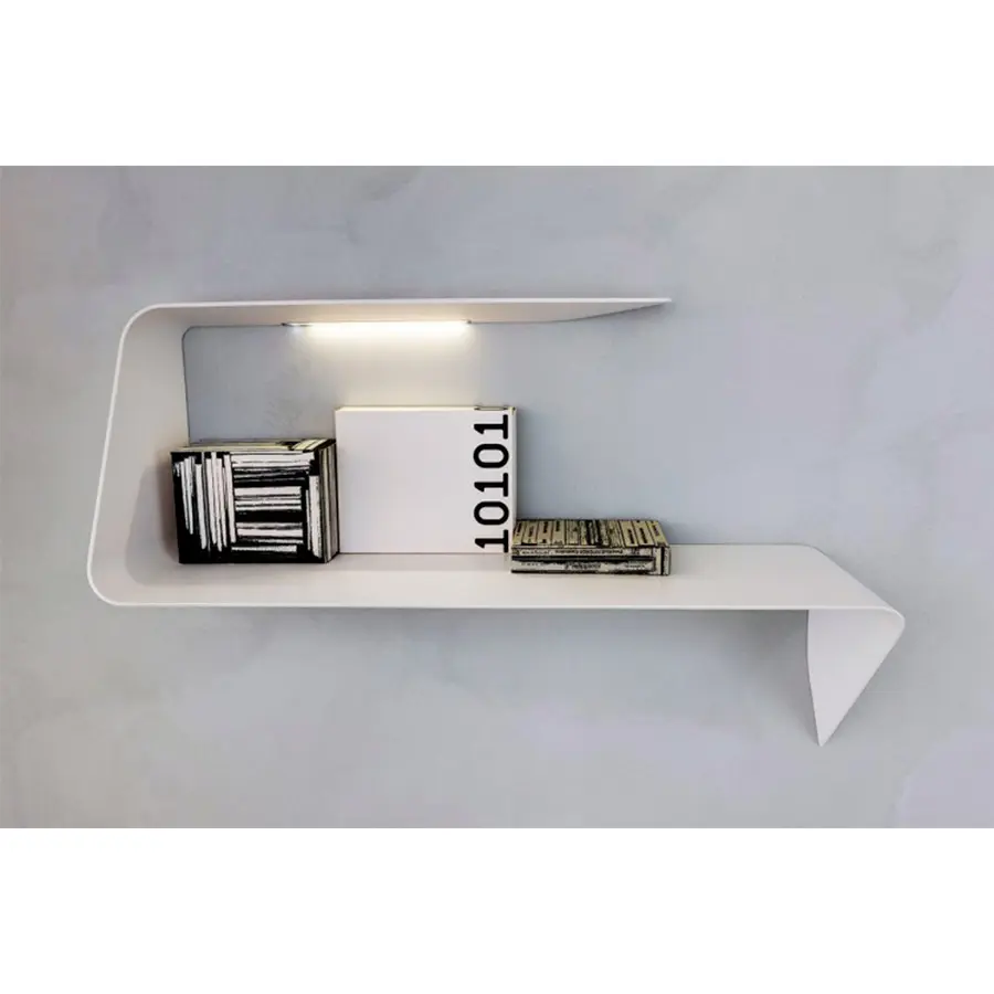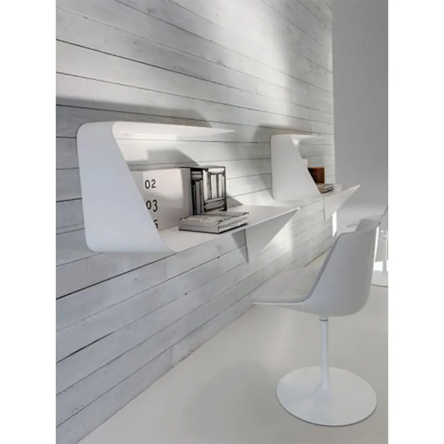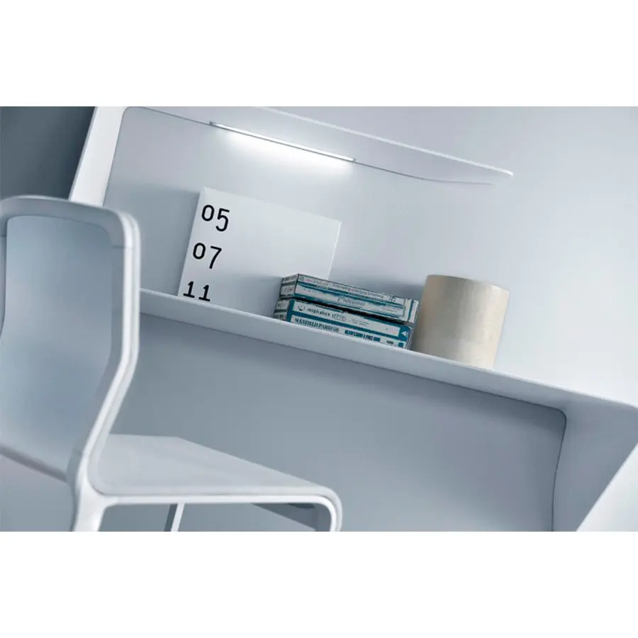 Estantería y / o escritorio de pared. La forma ondulada y el grosor cónico añaden un fuerte impacto visual al diseño e imagen del producto. Mamba también cuenta con un LED HD blanco.